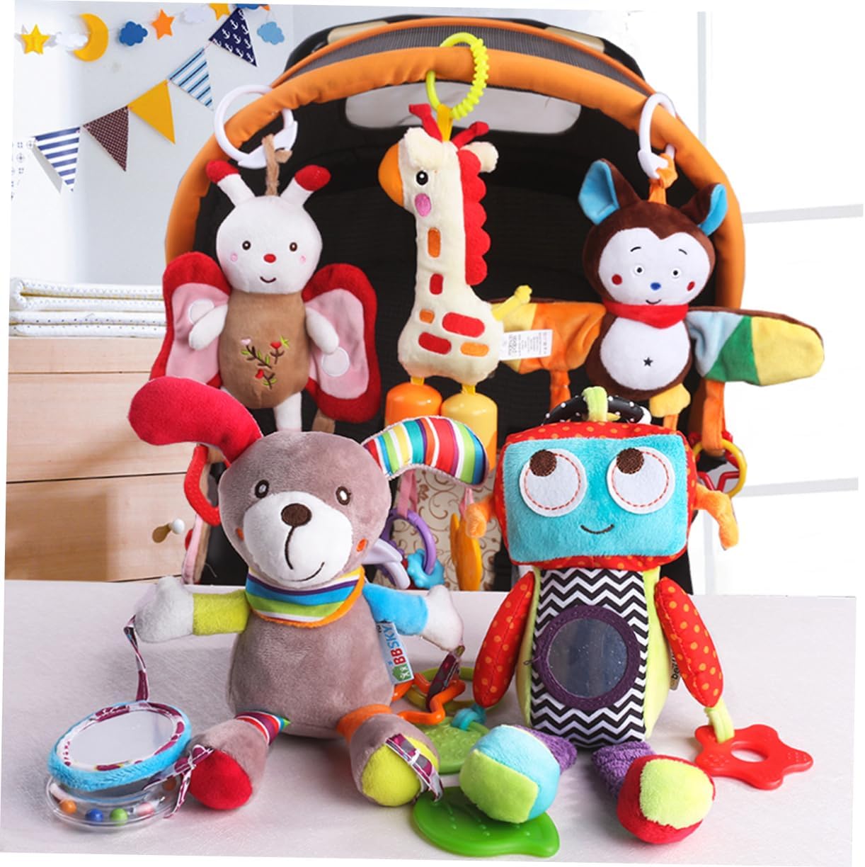 Giocattoli per bambini: questo giocattolo da letto manterrà il tuo bambino occupato e divertito. Giocattoli per culla: promuovono la vista e lo sviluppo dell'udito del bambino. Giocattoli rilassanti per bambini: simpatici campanelli eolici a forma di animali cartoni animati, possono consentire al tuo bambino di praticare esercizi di presa e promuovere la coordinazione occhio-mano . Peluche: fai divertire il tuo bambino e regala ai tuoi bambini una giornata felice. Peluche : i personaggi appesi possono intrattenere il bambino evitandogli di piangere.