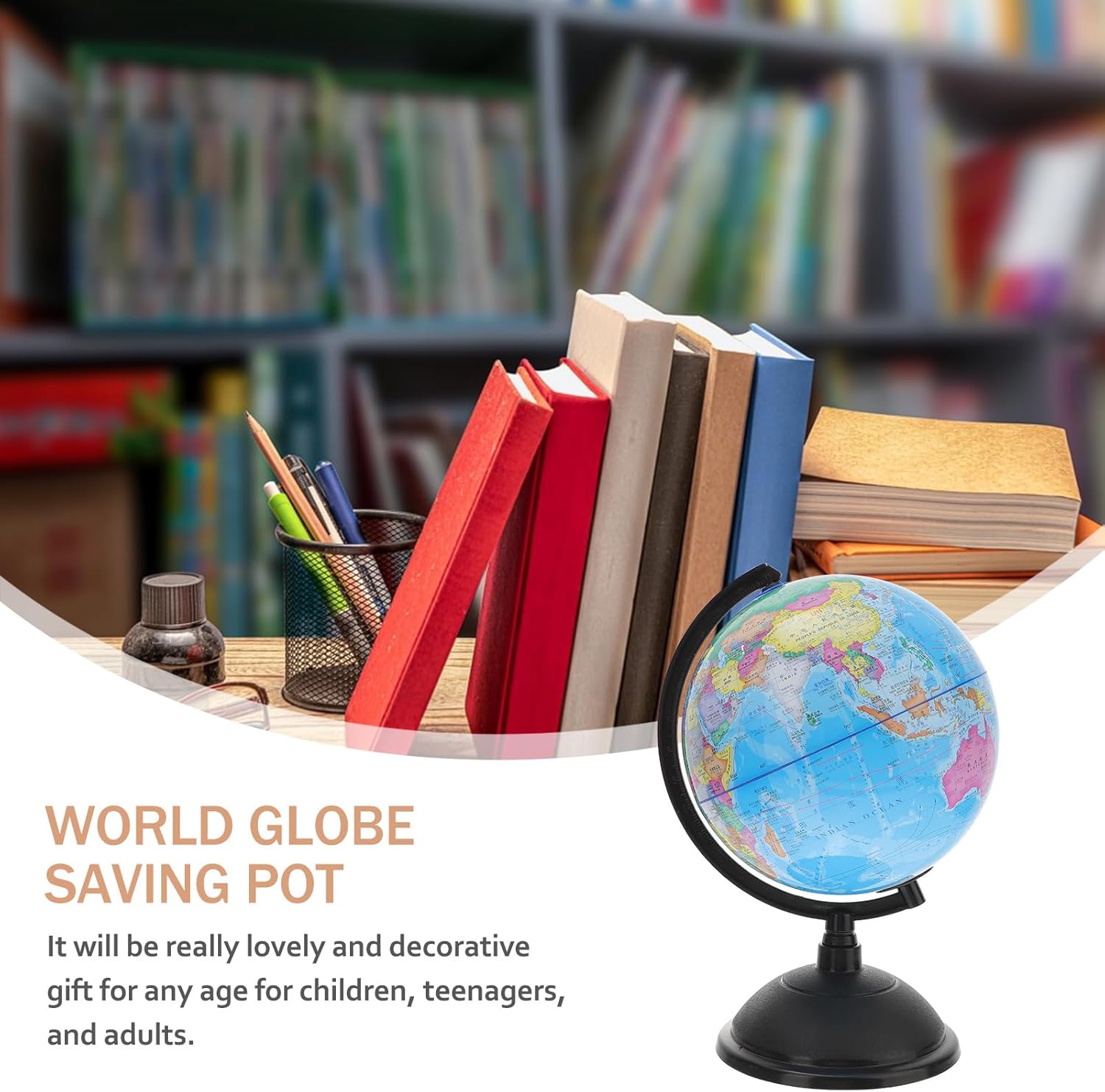 Mappamondo da scrivania: adatta a quasi tutti i tipi di standard, incoraggia i bambini a risparmiare con questo salvadanaio a forma di globo!,globo interattivo Salvadanaio a forma di globo: il nostro salvadanaio terrestre è adatto a qualsiasi luogo, puoi metterlo sul tavolo, sulla scrivania, sullo scaffale e così via, salvadanaio con mappamondo Globo per bambini: il design creativo del globo può attirare molto l'attenzione di tuo figlio, molto divertente e adorabile, globo per bambini Salvadanaio a globo: abbastanza da contenere , , banconote, ecc., per i bambini in occasione di compleanni e occasioni festive, salvadanaio a globo Decorazione da tavolo: è realizzata in materiale pvc, resistente alle cadute e inodore da usare, globo rotante