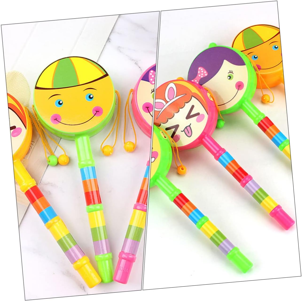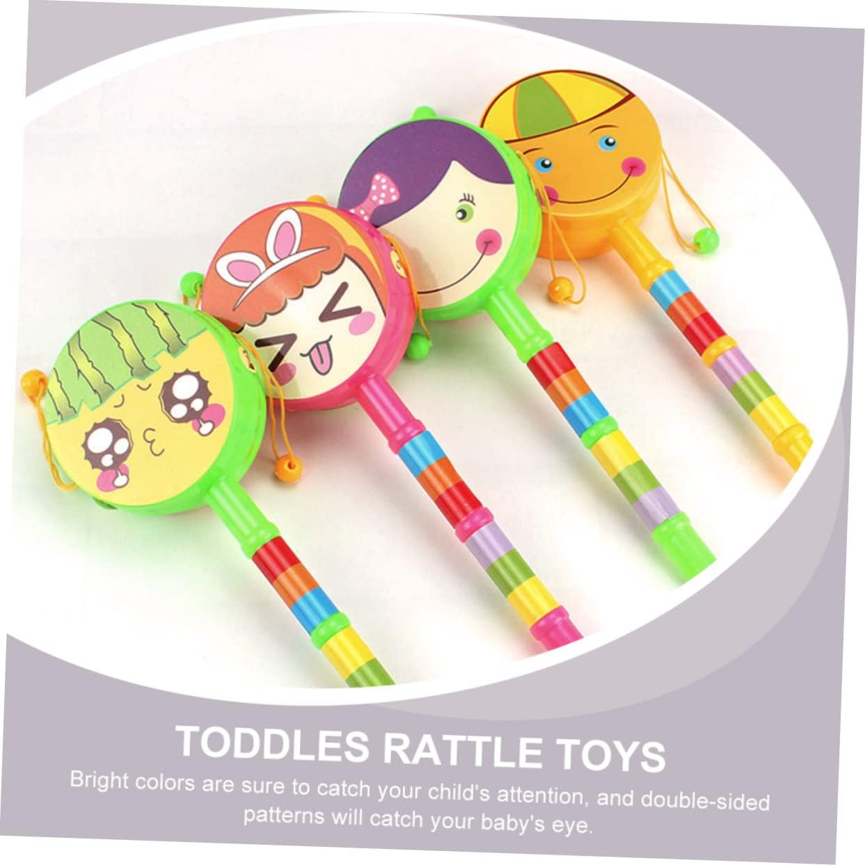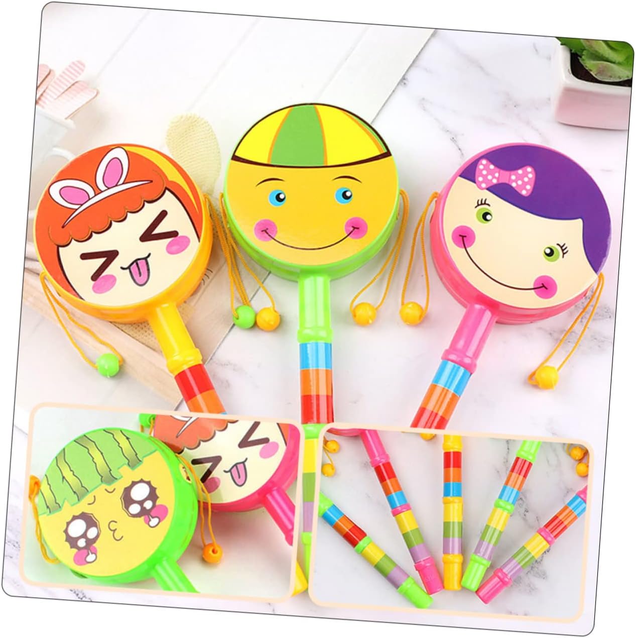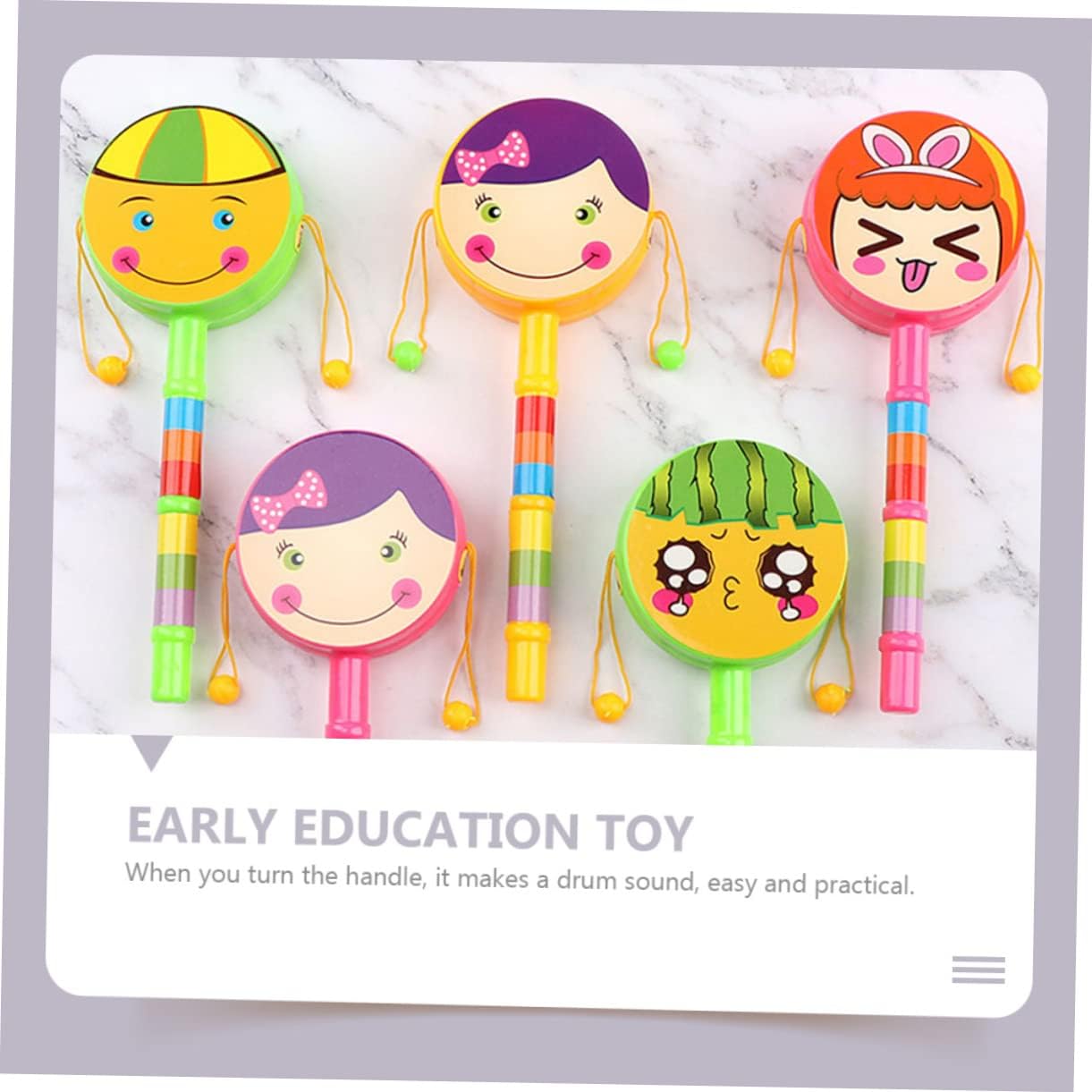 A forma di cartone animato: agita la maniglia e agita per un suono di percussione continuo e veloce, di plastica per Adorabili giocattoli a tamburo: la superficie è liscia e i bordi e gli angoli sono trattati con delicatezza, giocattoli educativi per Tamburi a sonagli: questo giocattolo creativo può aiutare a sviluppare la flessibilità e la coordinazione di e occhi, giocattolo per piccoli Squisito - fatto di materiale, pratico, senza sbavature, di plastica Giocattoli a tamburo sonaglio: il tamburo sonaglio potrebbe rendere i tuoi più divertenti con i ritmi, tamburi portatili