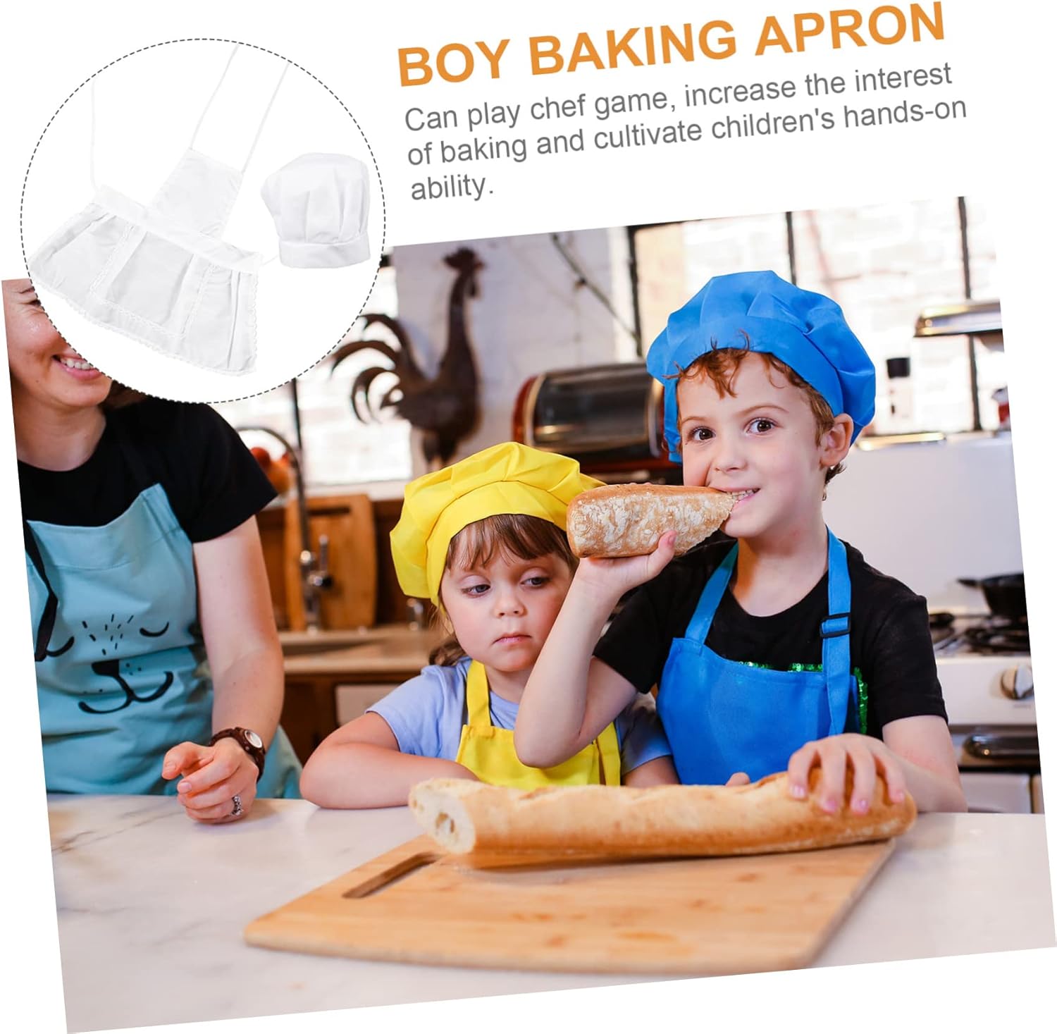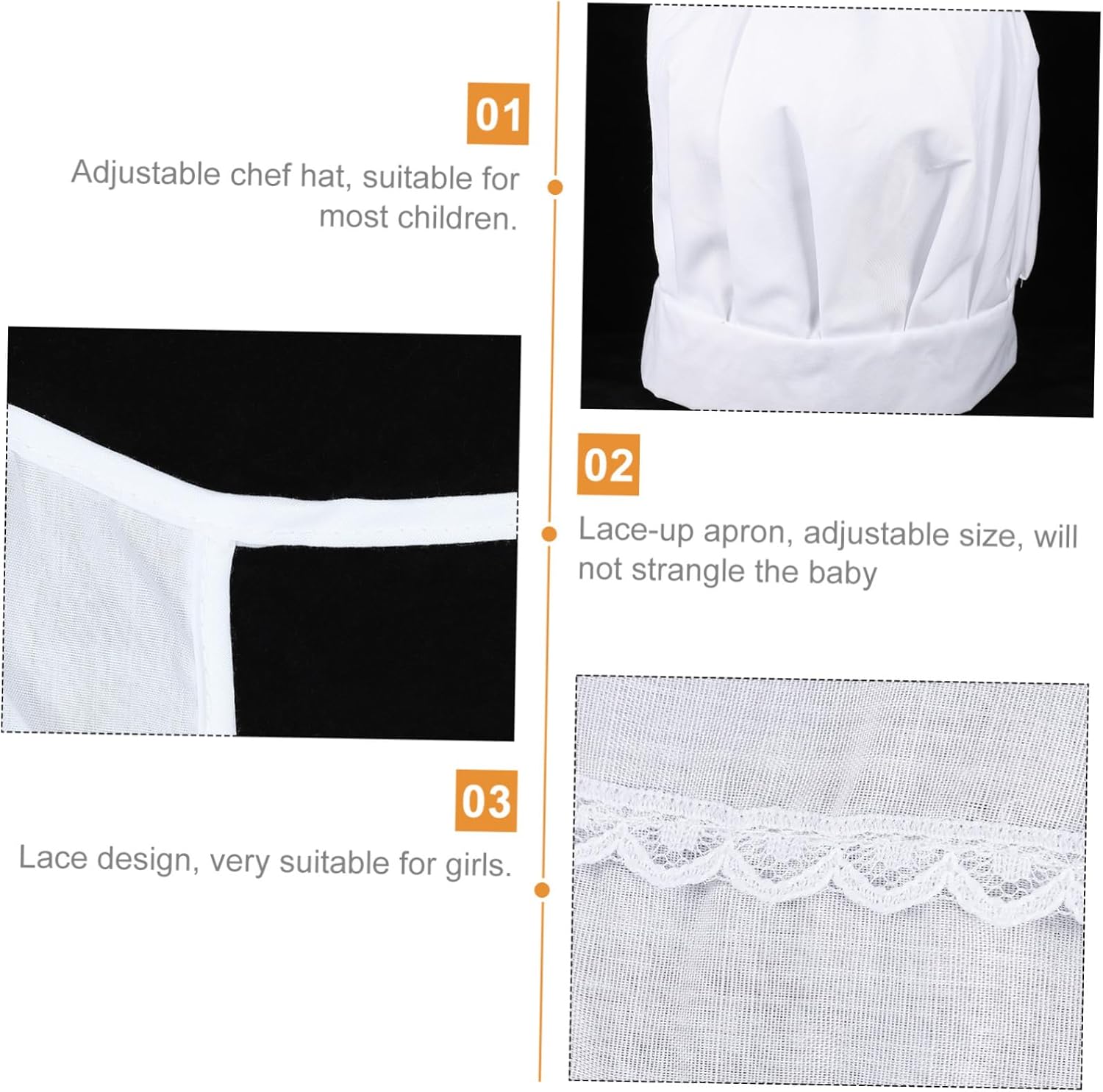 Grembiule da cucina: adatto per tutti i giochi di cucina e di cottura dei piccoli chef, coinvolge i bambini nella cottura. Costume da gioco di ruolo: dolci e cucina con la tua ragazza, goditi il tempo felice in cucina in famiglia insieme. Grembiuli per bambini: i bambini possono giocare a finto gioco di ruolo da chef, questo giocattolo incoraggerà la creatività e l'immaginazione dei bambini. Cappello da cucina: usando la frusta e il cucchiaio per mescolare il cibo, usa le formine per torte per preparare i biscotti, liberamente con abilità pratica. Cappello da panettiere in cotone: il grembiule ha una tasca, design per riporre gli strumenti del tuo ragazzo, come misurino, frusta.