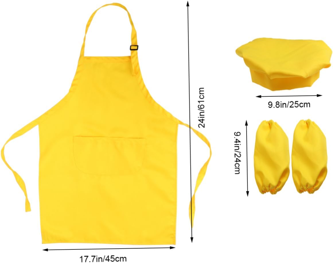 Cappello: adatto per bambini 7 ai 13 anni, set da gioco da chef Manica da cucina per bambini: tessuto spesso e liscio, facile da decorare con pennarello, termoadesivo o ricamo, set da gioco per chef Polsino da cucina per bambini: costume divertente e funzionale, può fare giochi di ruolo e fingere di aiutare e papà in cucina, l'abito li rende adorabili e previene l'olio o la combustione, set da gioco per chef Grembiule: ideale per cucinare, dipingere, cuocere forno o decorare feste, porta più divertimento e sorpresa per il set da gioco dello chef Set da gioco da chef: realizzato in materiale, il set da chef è di , inoltre è facile e comodo da pulire, cappello