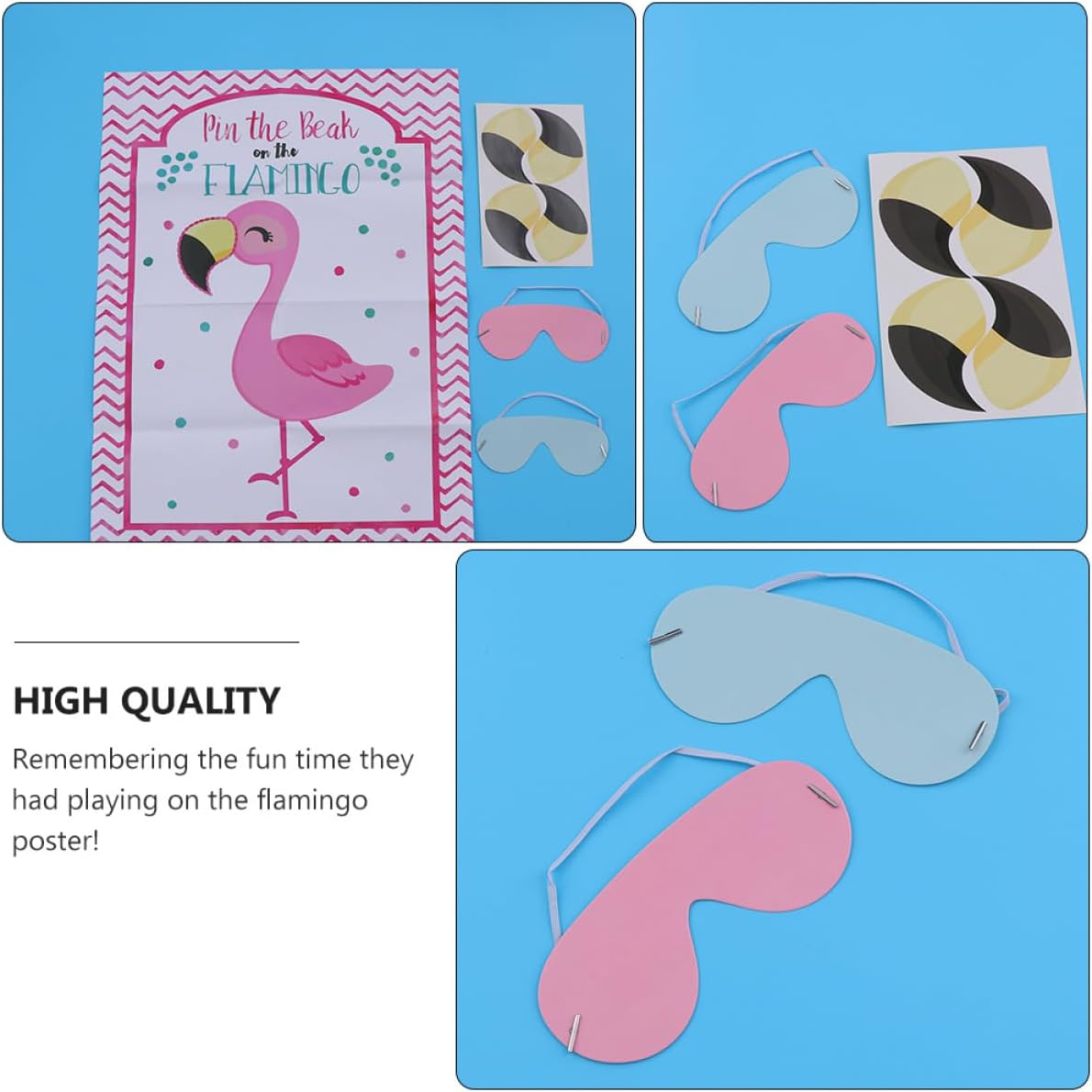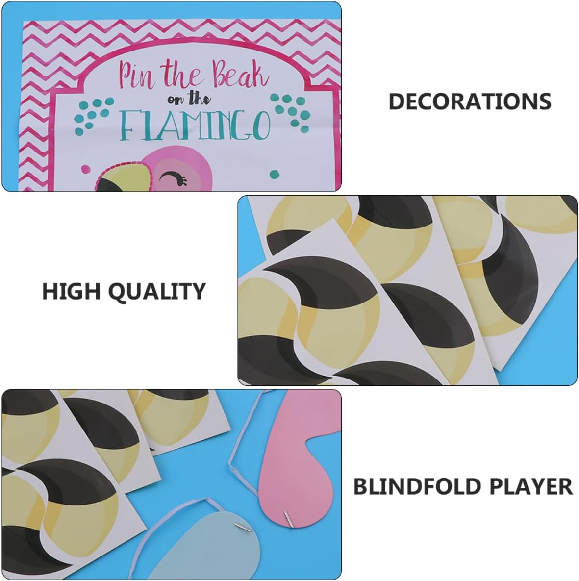 Adesivo del gioco del fenicottero: prima un becco, poi indossa la maschera per gli occhi, prova ad attaccare il becco al fenicottero, quello più vicino, adesivo fotografico Adesivo fotografico - giocatore bendato, muovilo delicatamente e conducilo verso il poster, poster del gioco Adesivo da gioco: ideale per feste di compleanno, feste in classe, feste scolastiche, decorazioni per la casa, decorazioni murali, decorazioni per la stanza, il poster è fantastico come decorazione da parete!, adesivo fotografico Poster del gioco: articoli per feste, crea bellissimi ricordi e aggiungi più divertimento alla famiglia, adesivo fotografico Gioco "pin the beak" - splendidamente confezionato per feste di compleanno, shower, feste in classe e feste di fiesta, adesivo fotografico