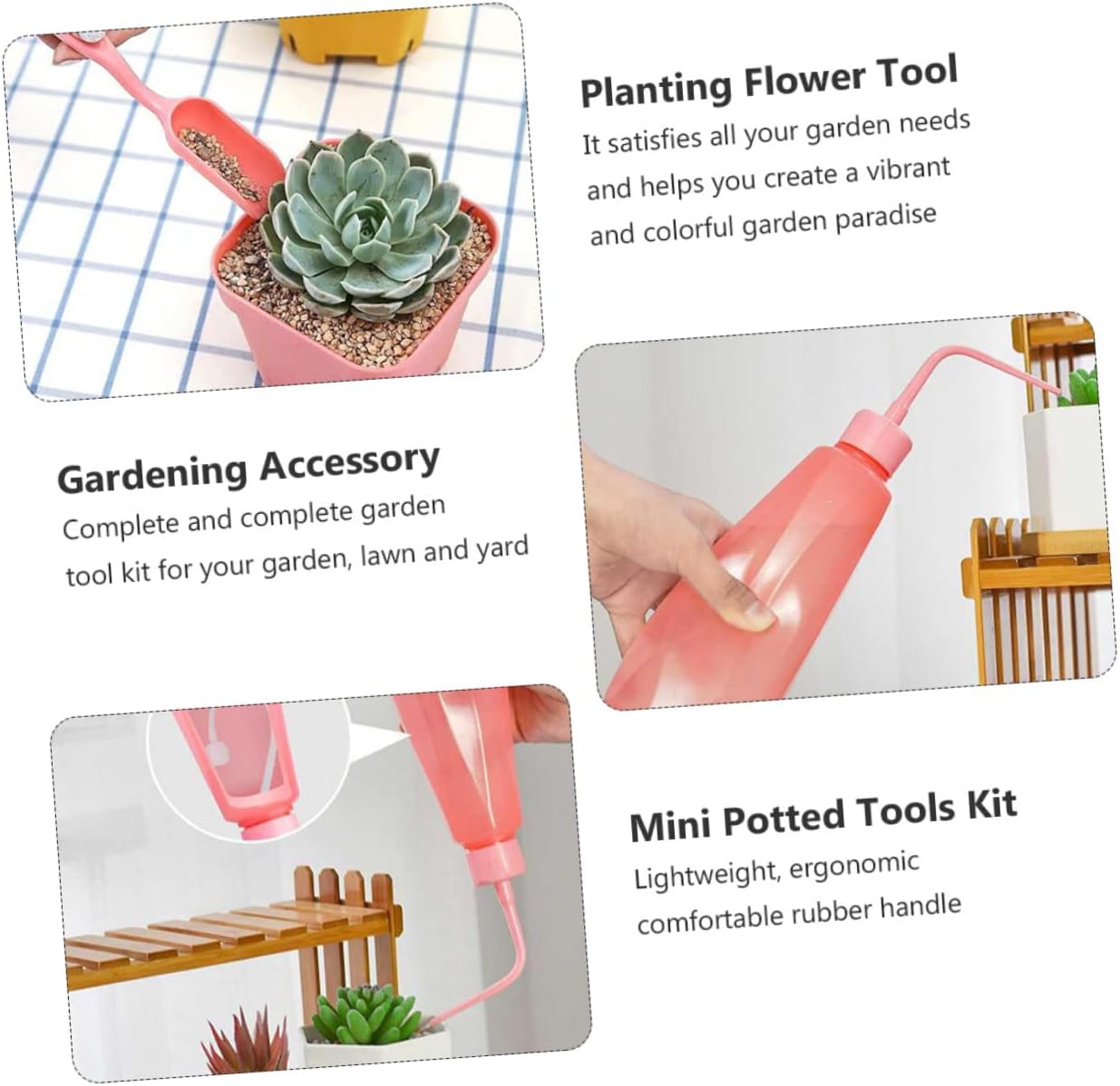 Mini utensili da giardino manuali: realizzati con materiali con superficie liscia per un uso prolungato e sicuro, accessorio da giardinaggio Strumento per piantare fiori: è adatto a vari compiti come scavo, diserbo, allentamento del terreno, aerazione e trapianto, strumenti per trapianto Mini rastrello e pala: possono essere utilizzati per vari lavori di giardinaggio, molto adatti per l'uso in lavori di trapianto e coltivazione, strumenti per il trapianto di bonsai Kit di piantagione: materiali in plastica e ferro per un uso sicuro e durevole, strumenti per piantare bonsai Attrezzi da giardinaggio in miniatura: ecologici, facili da impugnare e molto sicuri, utensili manuali per la piantagione di piante succulente