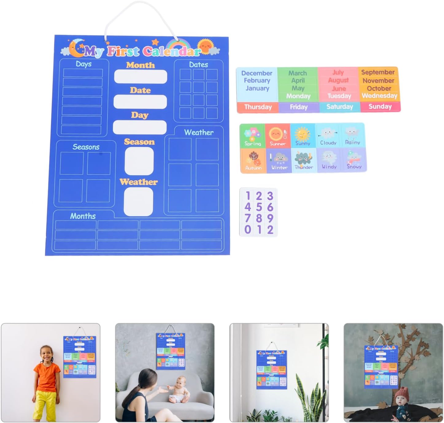 Giocattolo cognitivo colorato: coltiva la loro abilità pratica, la vista, l'interesse, lo sviluppo intellettuale e altre abilità, calendario da parete per piccoli Giocattolo didattico con calendario per piccoli: i possono imparare il mese, il meteo, il della settimana, la data e così via da questo giocattolo, giocattolo cognitivo per Calendario giocattolo da appendere: forma a cartone animato e colori vivaci, facile da attirare l'attenzione dei , giocattolo per l'apprendimento precoce dei Giocattolo per il riconoscimento del tempo e giocattolo educativo per piccoli, anche una decorazione per la casa, calendario e tabella meteorologica Calendario didattico per : per sviluppare le capacità cognitive dei e apprendere le stagioni e i concetti di tempo, calendario prescolare per la classe