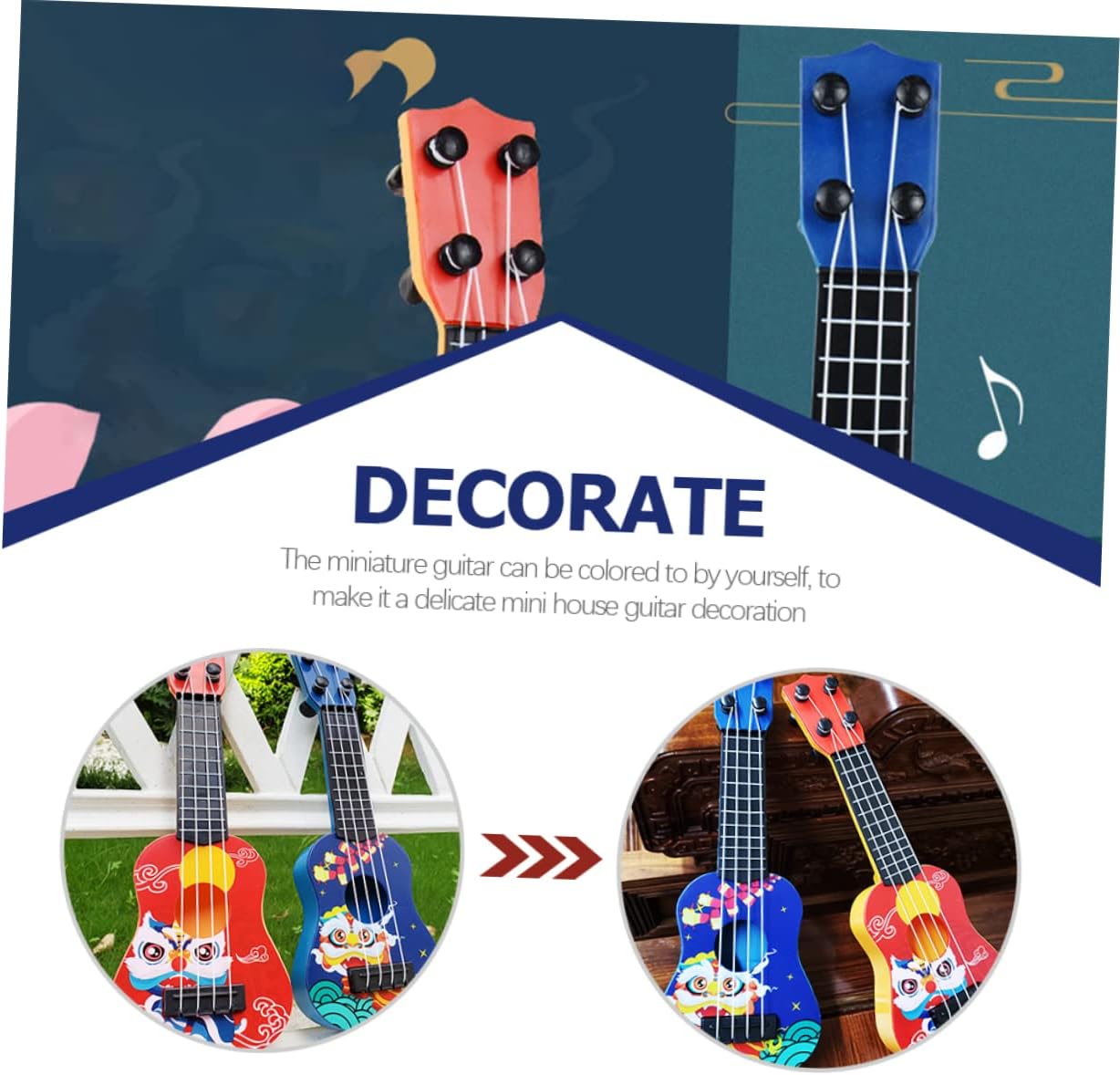 Ukulele giocattolo: realizzato in materiale pregiato, con dettagli squisiti e lavorazione raffinata, questa chitarra in miniatura è un ukulele per bambini. Ukulele per bambini principianti: questa mini chitarra può essere abbinata bene a mini libri, mini sculture e altre miniature, mini decorazioni per ukulele Mini chitarra: l'accessorio per la casa, per creare una scena completa della camera da letto, strumento musicale Decorazione mini chitarra: un fantastico per tua figlia, ispira l'immaginazione e la creatività dei bambini costruendo la loro piccola casa, ukulele in miniatura Strumenti per bambini: per mini decorazioni per la casa o accessori decorativi per la camera da letto in micro paesaggio, semplici e squisiti, mini chitarra per bambini