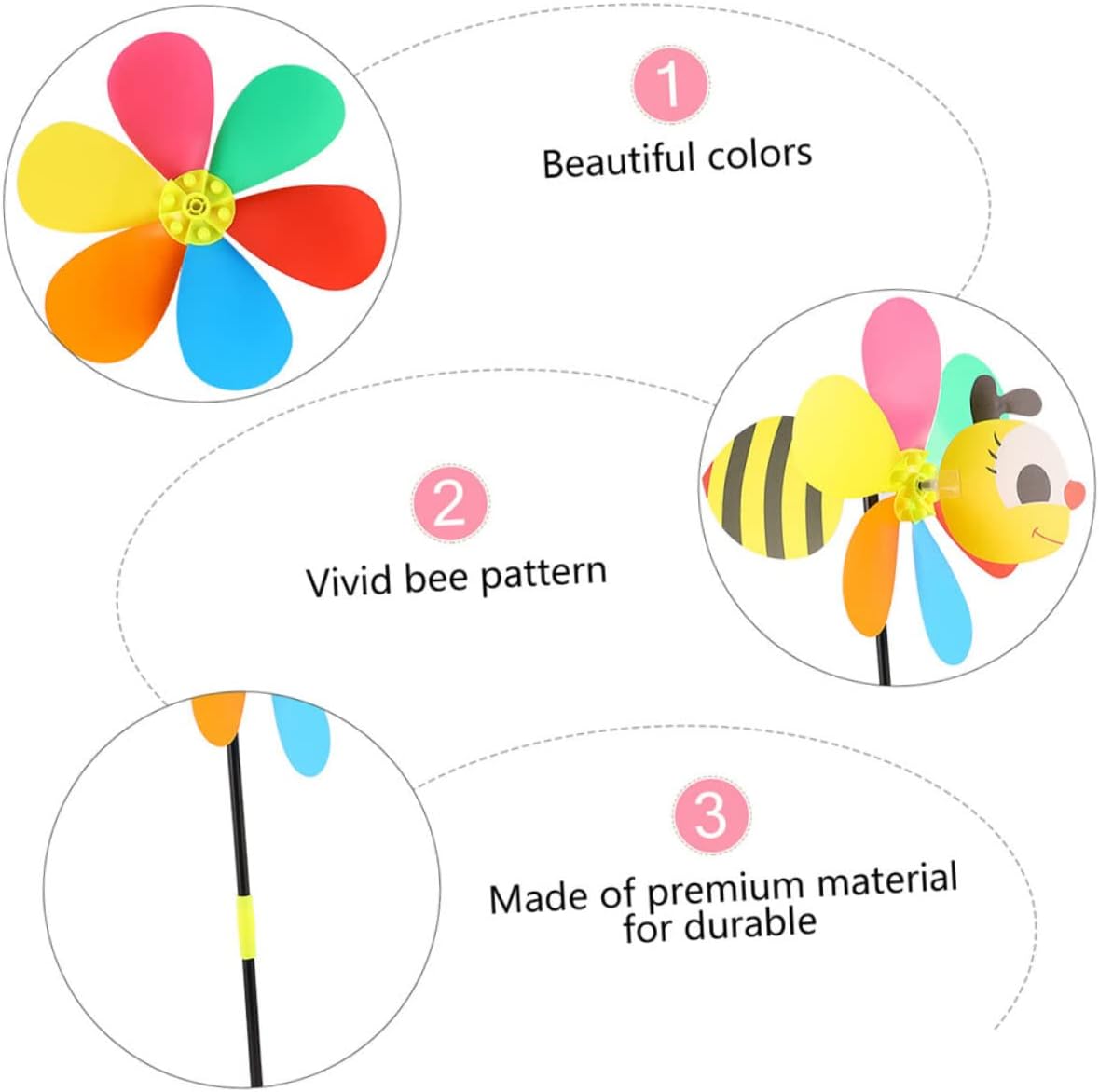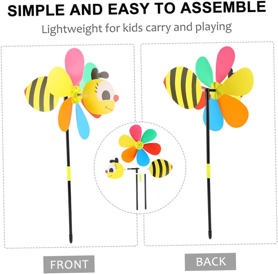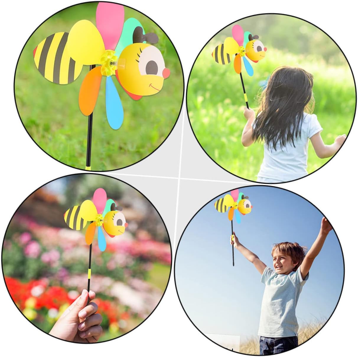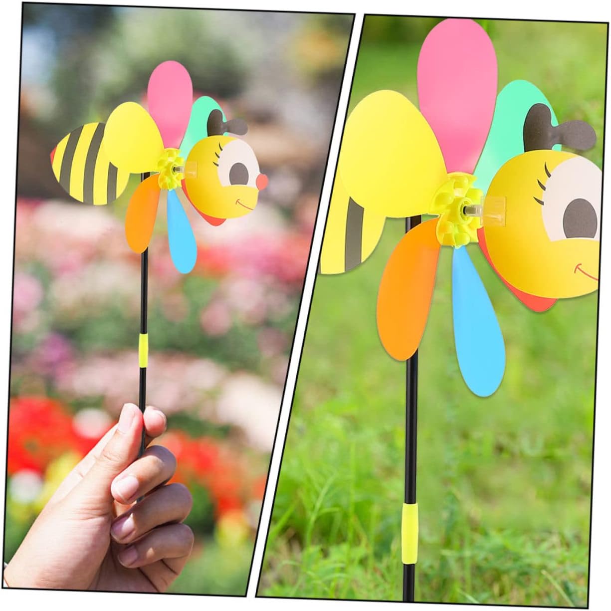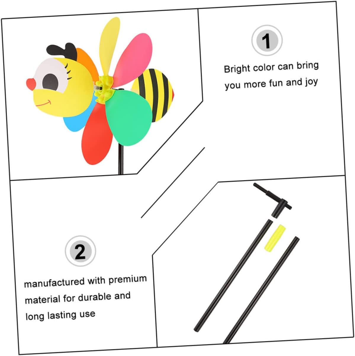 Girandole a vento a forma di ape: facili da usare quando soffia il vento, girano, divertenti da giocare, i tuoi le adoreranno, girandole per decorare il giardino Mulini a vento da esterno: possono essere utilizzati come ornamento per la casa e il giardino, un'ottima decorazione aggiuntiva per interni ed esterni, giocattolo a forma di mulino a vento a forma di ape Decorazioni a forma di mulinello per feste: presentano un adorabile design a forma di cartone animato, molto adorabile e interessante, aggiungono più gioia alla tua vita quotidiana, mulinelli giocattolo Girandole da giardino: decorano il tuo giardino, le tue feste e i tuoi matrimoni per rallegrare il tuo evento, possono essere utilizzate anche all'aperto, come decorazioni per Mulino a vento da giardino: accattivante, dona più bellezza al tuo giardino, decora il tuo giardino con mulinelli per un effetto visivo sorprendente!, mulino a vento decorativo