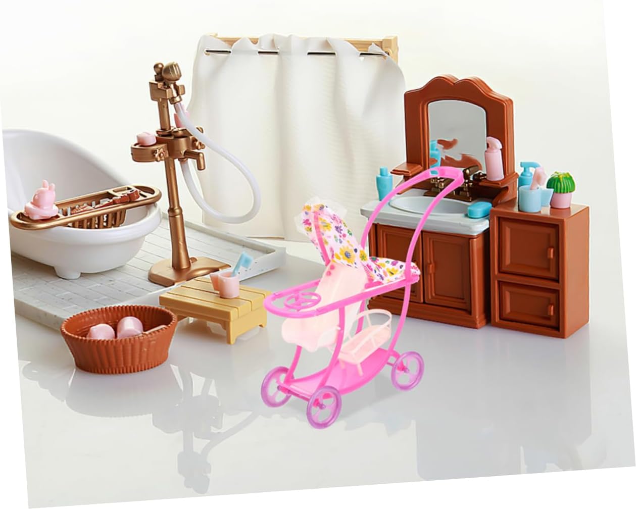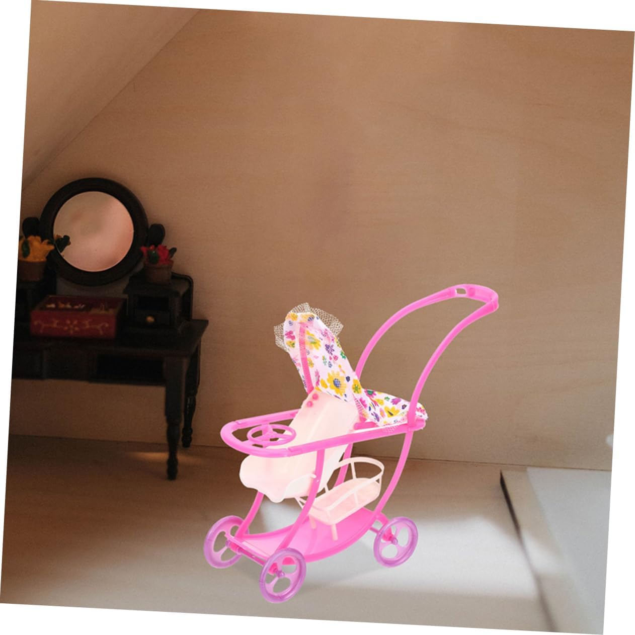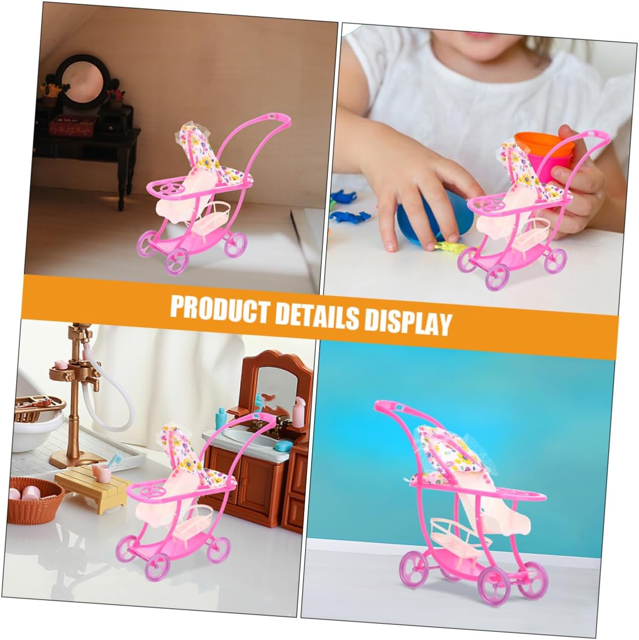 Passeggino giocattolo per bambole: design modellabile per passeggino in plastica per bambole, squisito e decorativo, ottimo per la casa delle bambole, l'arredamento della mini casa. Divertente giocattolo per passeggino: il suo design versatile lo rende ideale per il gioco di finzione e funge anche da elegante pezzo decorativo per qualsiasi stanza, migliorandone il fascino generale, simulazione del passeggino per bambole. Decorazione modello passeggino: vantando un'elegante estetica giapponese, questo pezzo perfettamente nell'arredamento contemporaneo della casa, aggiungendo un tocco di raffinatezza, passeggino giocattolo. Giocattolo per passeggino mini bambola: offre una migliore esperienza di gioco, puoi utilizzare questo adorabile modello di passeggino per decorare la casa delle bambole, il carrello in miniatura. Giocattolo per passeggino: con il suo design a doppio scopo, questo passeggino è ottimo sia per il gioco fantasioso che come elegante pezzo decorativo nella stanza del tuo bambino, accessorio per bambole.