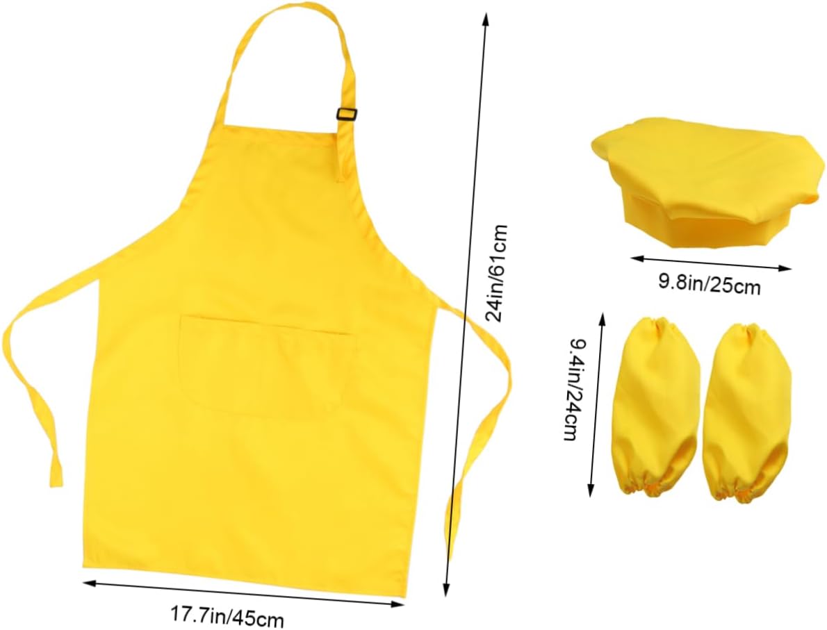 Set da gioco per chef per bambini: ideale per cucinare, dipingere, cuocere al forno o decorare una festa. porta più divertimento e sorpresa per i bambini. Polsino da cucina per bambini: tessuto addensato e liscio, facile da decorare con pennarello, ferro da stiro o ricamo. Grembiule per bambini: realizzato in materiale, il set da chef è durevole e di lunga durata. inoltre, è facile e comodo da pulire. Manica da cucina per bambini: questo set da chef per bambini include tutti gli accessori, come cappello, grembiule e polsini. Cappello per bambini: costume divertente e funzionale. i bambini possono fare giochi di ruolo e fingere di aiutare mamma e papà in cucina, il vestito li rende adorabili e previene l'olio o le bruciature.