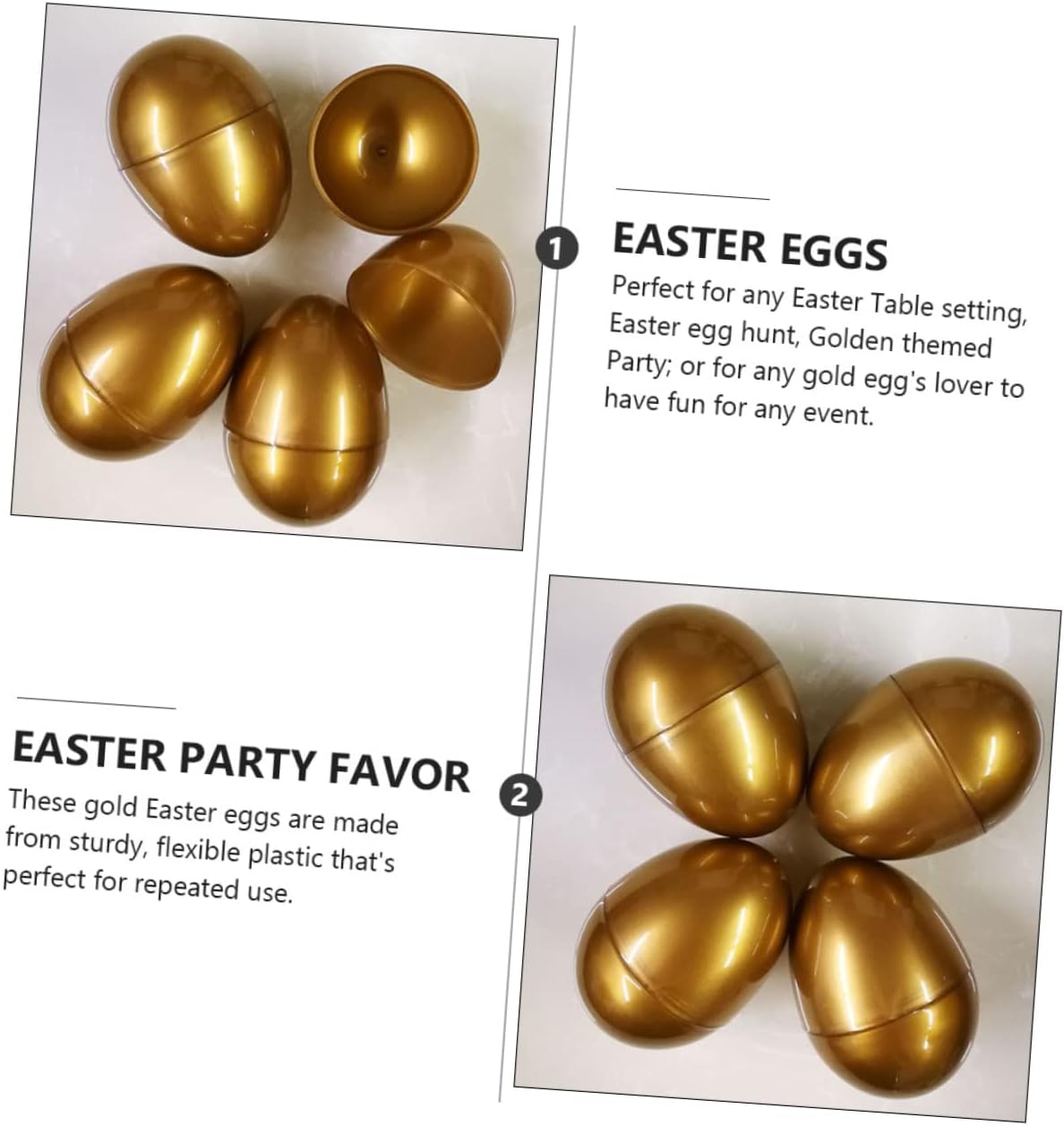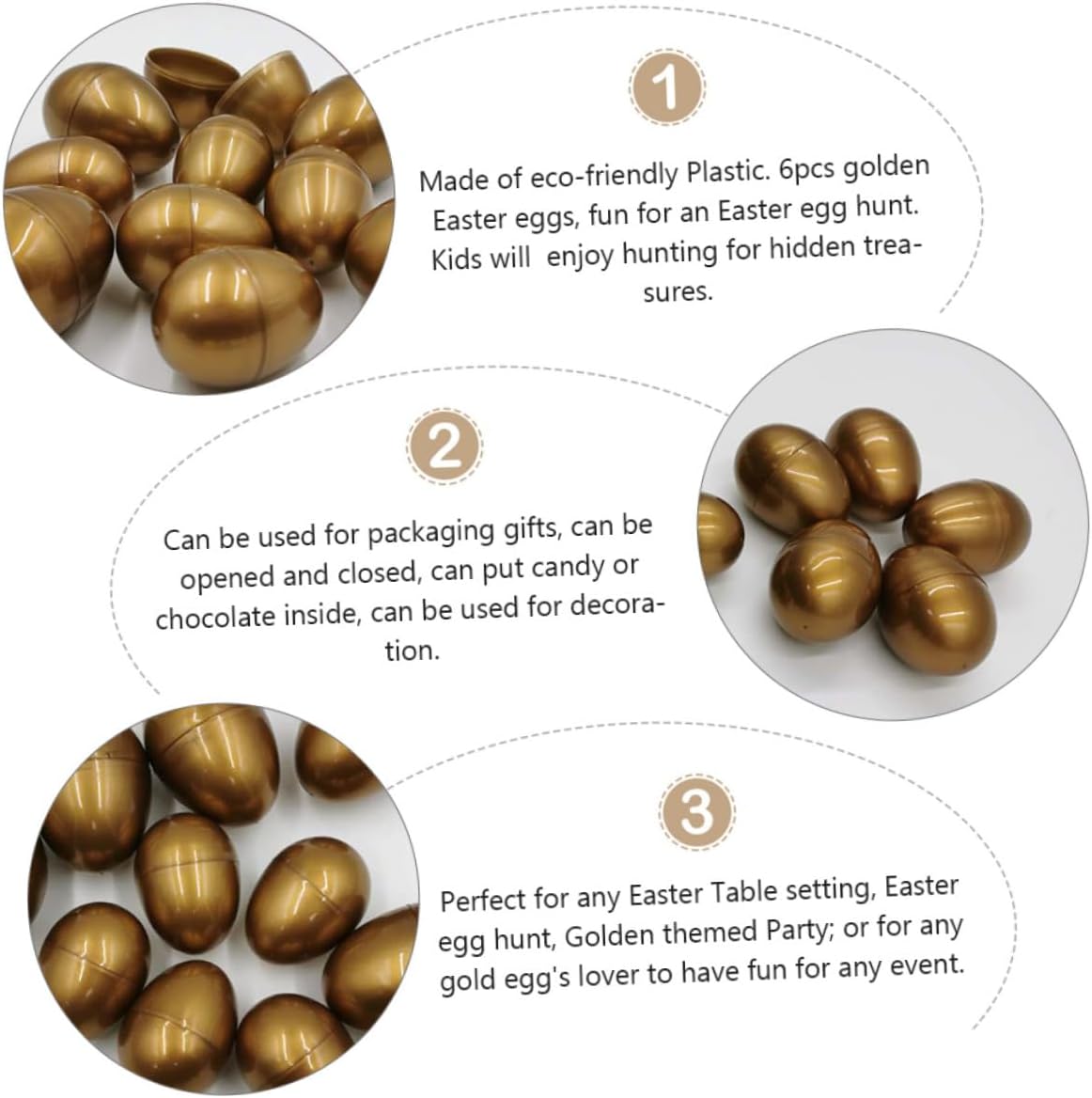 Oggetti di scena - Hanno le stesse dimensioni delle uova che mangiamo e le dimensioni soddisfano esigenze diverse, Giocattoli per bambini Uova di Pasqua - queste uova vuote non sono adatte solo per nascondere i regali di Pasqua, ma anche per dipingere, Bomboniera dorata - in plastica, 6 uova di Pasqua dorate, divertente nella caccia alle uova di Pasqua, si divertirà a cercare tesori nascosti, Giocattoli di Pasqua per uova - per - Uova di Pasqua lucide, color oro, riempibili, riempile con tutte le sorprese e dolcetti, gusci di uova di plastica Giocattoli di Pasqua - possono essere usati per imballare, possono può essere aperto e chiuso, può contenere caramelle o cioccolato all'interno, può essere utilizzato per decorazioni o confezioni creative