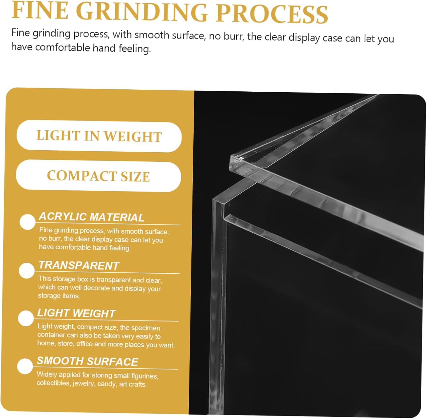 Piccole scatole: questa scatola è trasparente e chiara, che può ben decorare e visualizzare i tuoi oggetti di archiviazione, scatole trasparenti Vetrine trasparenti: peso leggero, dimensioni compatte, il contenitore per campioni può anche essere portato facilmente a casa, in negozio, in ufficio e in altri posti desiderati, contenitore per campioni Vetrina in acrilico: dimensioni ridotte, occupa troppo spazio, facile da trasportare e decorare per la casa, ottima per esporre palline, piccole statue, ecc., scatole per riporre palline Piccole vetrine--realizzate in materiali acrilici e di buona fattura, questa vetrina portatile è e può essere utilizzata per lungo tempo, vetrina trasparente Vetrina per statuetta: questa vetrina per statuetta è pratica per evitare che i tuoi oggetti graffino, inoltre ottiene un eccellente effetto protettivo, contenitore per esposizione di campioni