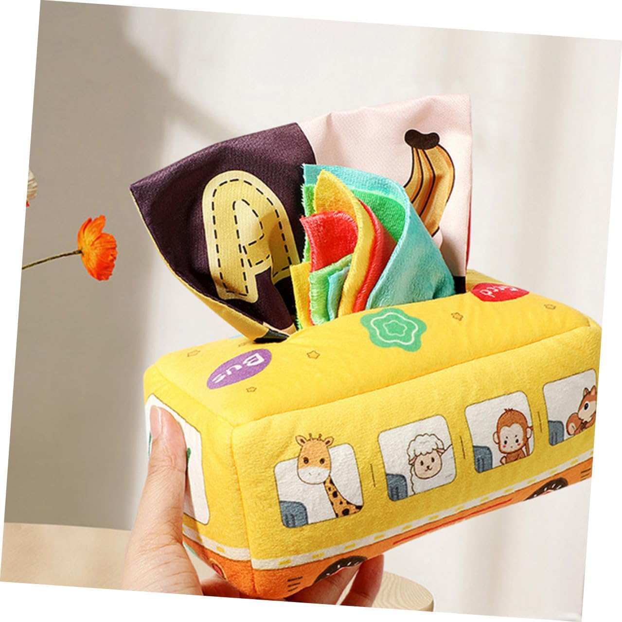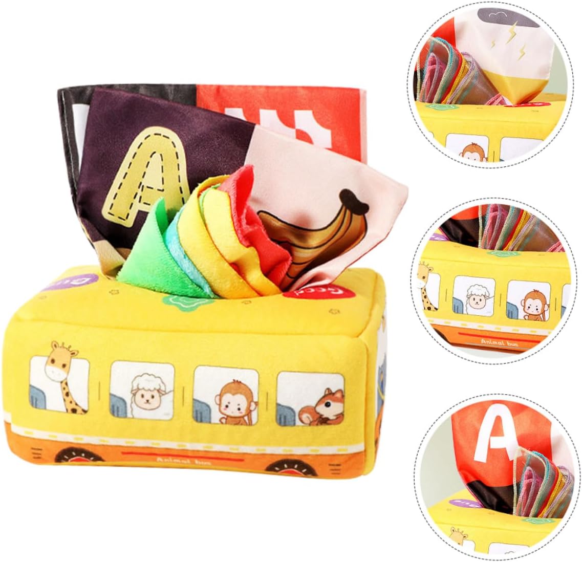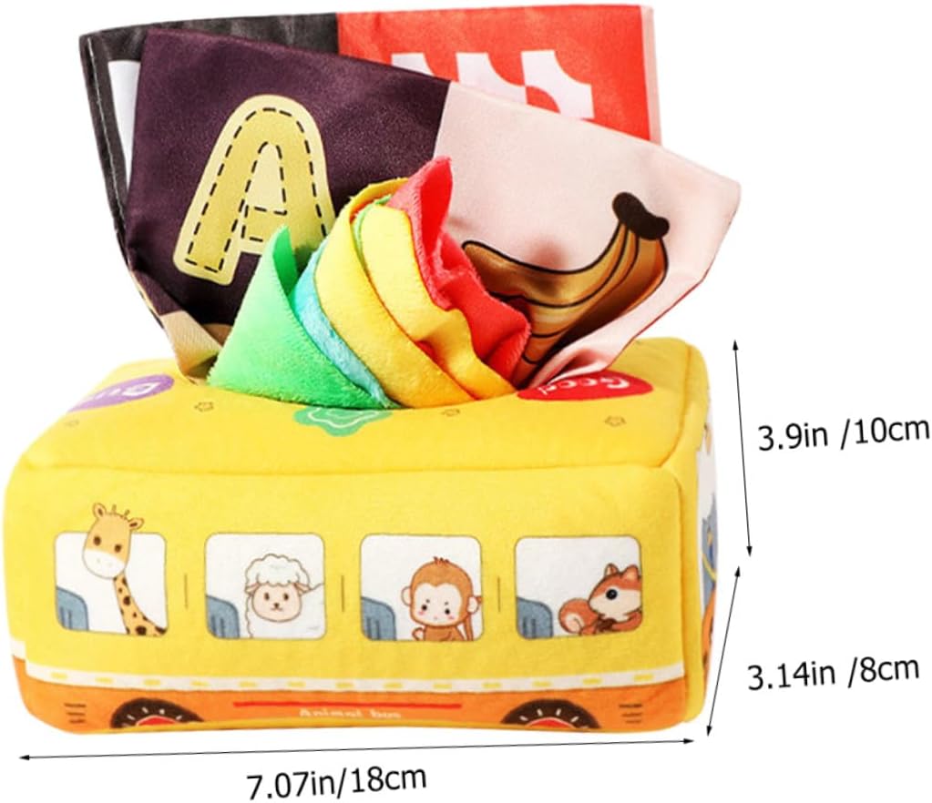 Sensoriale per: ideale per sviluppare la coordinazione occhio-mano, abilità pratiche, pensiero logico e creatività, giocattolo fazzoletto per bambini Giocattolo fazzoletto sensoriale indistruttibile: caratteristico e design con forma a bus semplice e generosa, linee morbide, giocattolo estraibile per fazzoletto da bambino Fazzoletto giocattolo per bambini: misura adatta per la mano del bambino. La nostra scatola di fazzoletti attirerà l'attenzione del tuo bambino. Uno bello per te, un fazzoletto giocattolo per i Montessori: non devi preoccuparti che si faccia male durante l'uso. È un buon regalo per il tuo giocattolo sensoriale per tirare i fazzoletti: con questa scatola di fazzoletti puoi praticare un gioco interattivo genitore-figlio con i tuoi figli ed esercitarti con le mani