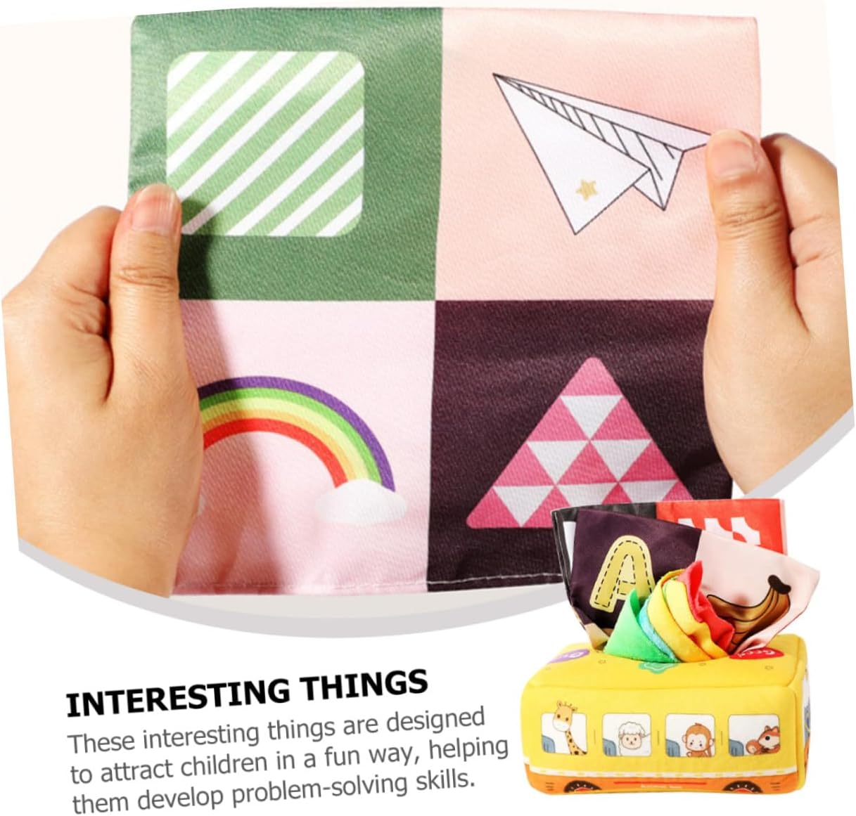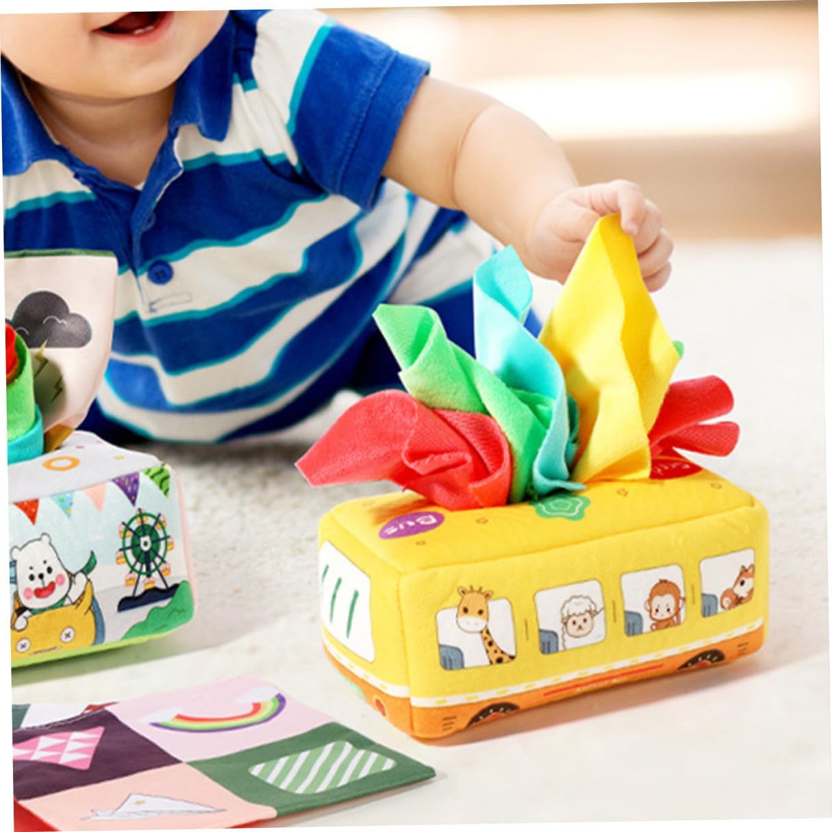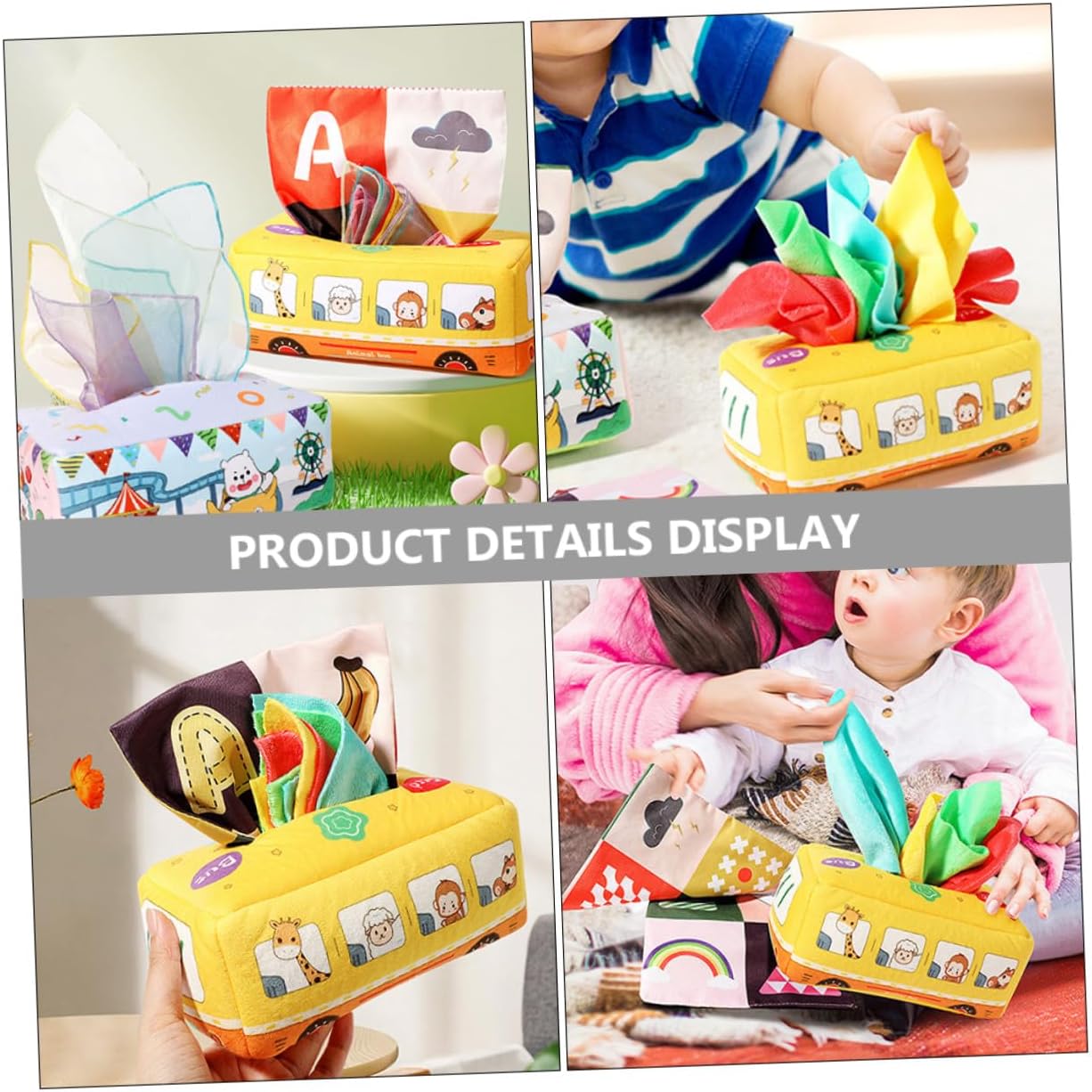 Sensoriale per: ideale per sviluppare la coordinazione occhio-mano, abilità pratiche, pensiero logico e creatività, giocattolo fazzoletto per bambini Giocattolo fazzoletto sensoriale indistruttibile: caratteristico e design con forma a bus semplice e generosa, linee morbide, giocattolo estraibile per fazzoletto da bambino Fazzoletto giocattolo per bambini: misura adatta per la mano del bambino. La nostra scatola di fazzoletti attirerà l'attenzione del tuo bambino. Uno bello per te, un fazzoletto giocattolo per i Montessori: non devi preoccuparti che si faccia male durante l'uso. È un buon regalo per il tuo giocattolo sensoriale per tirare i fazzoletti: con questa scatola di fazzoletti puoi praticare un gioco interattivo genitore-figlio con i tuoi figli ed esercitarti con le mani