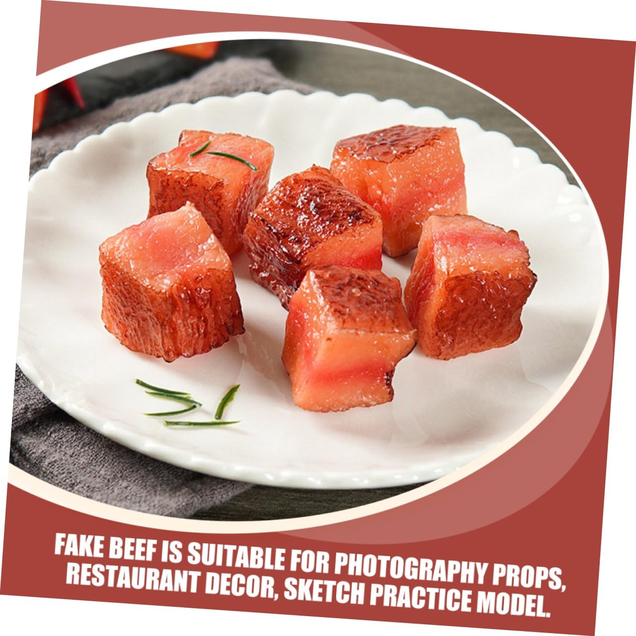 Modello di cibo decorativo: decorazione attraente e artificiale di carne per cucina, tavola e altre occasioni, supporto di carne artificiale Modello di cibo realistico: squisito, aspetto realistico, ricca composizione di colori, giocattolo di manzo artificiale è molto adatto per l'esposizione, carne simulata Modello di cibo artificiale: questo modello di manzo artificiale a dadini è realizzato in materiale PVC, sicuro da usare e può essere usato ripetutamente, supporto di carne artificiale Cibo artificiale: il manzo artificiale a dadini è meraviglioso per la decorazione della cucina, decorazione del bar, esposizione di ristoranti, decorazione di buffet e carne cotta artificiale Modello di carne fotografica: i cubetti di manzo simulati hanno un design realistico della forma, colore, aspetto delicato e delicato e sono una decorazione festiva