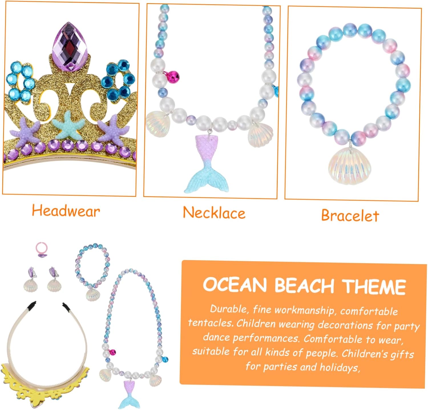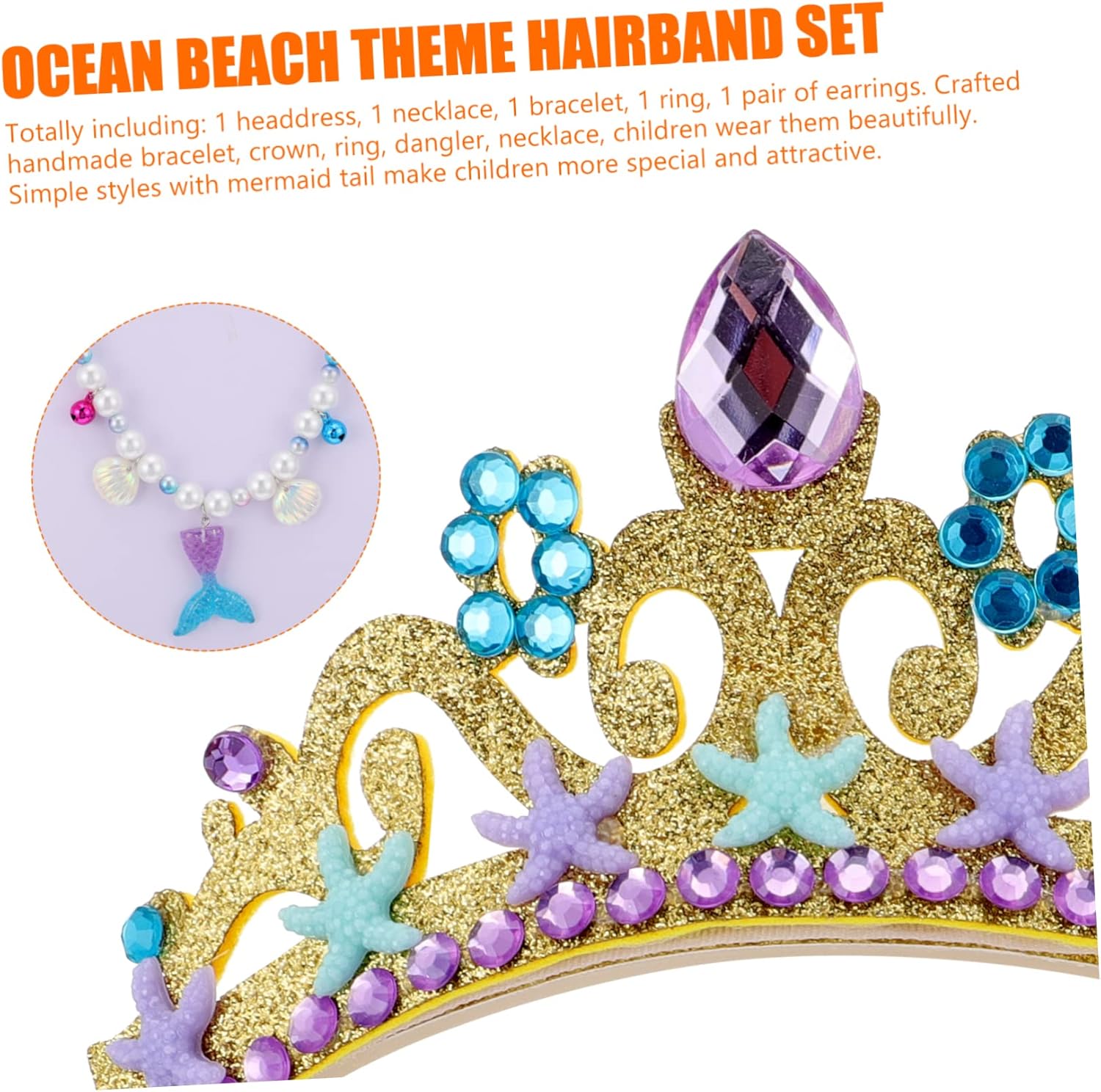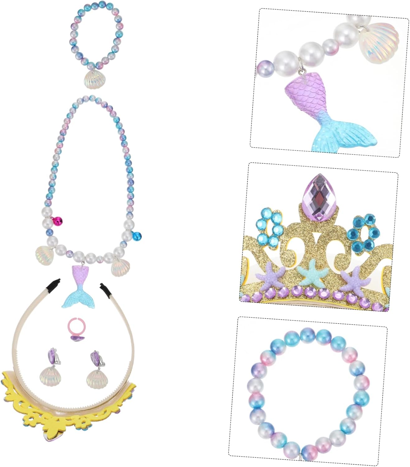 Bigiotteria da sirena: adatta per abbinare il vestito, il costume, gli quotidiani, ecc. Collana girocollo con perline: orecchini pendenti, , anello, braccialetto e collana con perline color caramello progettati per la tua bambina. Copricapo a sirena: design in stile adorabile e adorabile, ti fa risaltare tra la folla. Decorazione per feste a sirena: occasioni adatte ai bambini: compleanni, promozioni pubblicitarie, vacanze, commemorazioni di viaggi, cerimonie di premiazione, matrimoni, ecc. Bracciale con perline: braccialetto fatto a mano, , anello, ciondolo, collana, i bambini li indossano magnificamente.