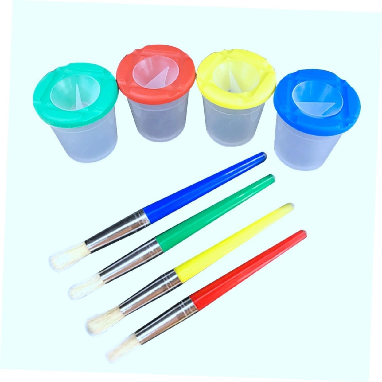 Pittura: testina con setole di alta qualità per creare bellissimi e soddisfare le diverse esigenze di pittura, pennello per pennello per: manico in plastica e tubo in metallo per una facile presa e controllo, pittura con vernice per bambini: utilizzata principalmente per disegnare immagini, adatta per anni. Adatto anche ai principianti che vogliono imparare a disegnare e dipingere per bambini. 4 bicchieri da pittura e 4 pezzi in un set danno ai tuoi bambini un controllo più preciso e versatile sulla loro pittura e li lasciano molto impegnati con la loro pittura