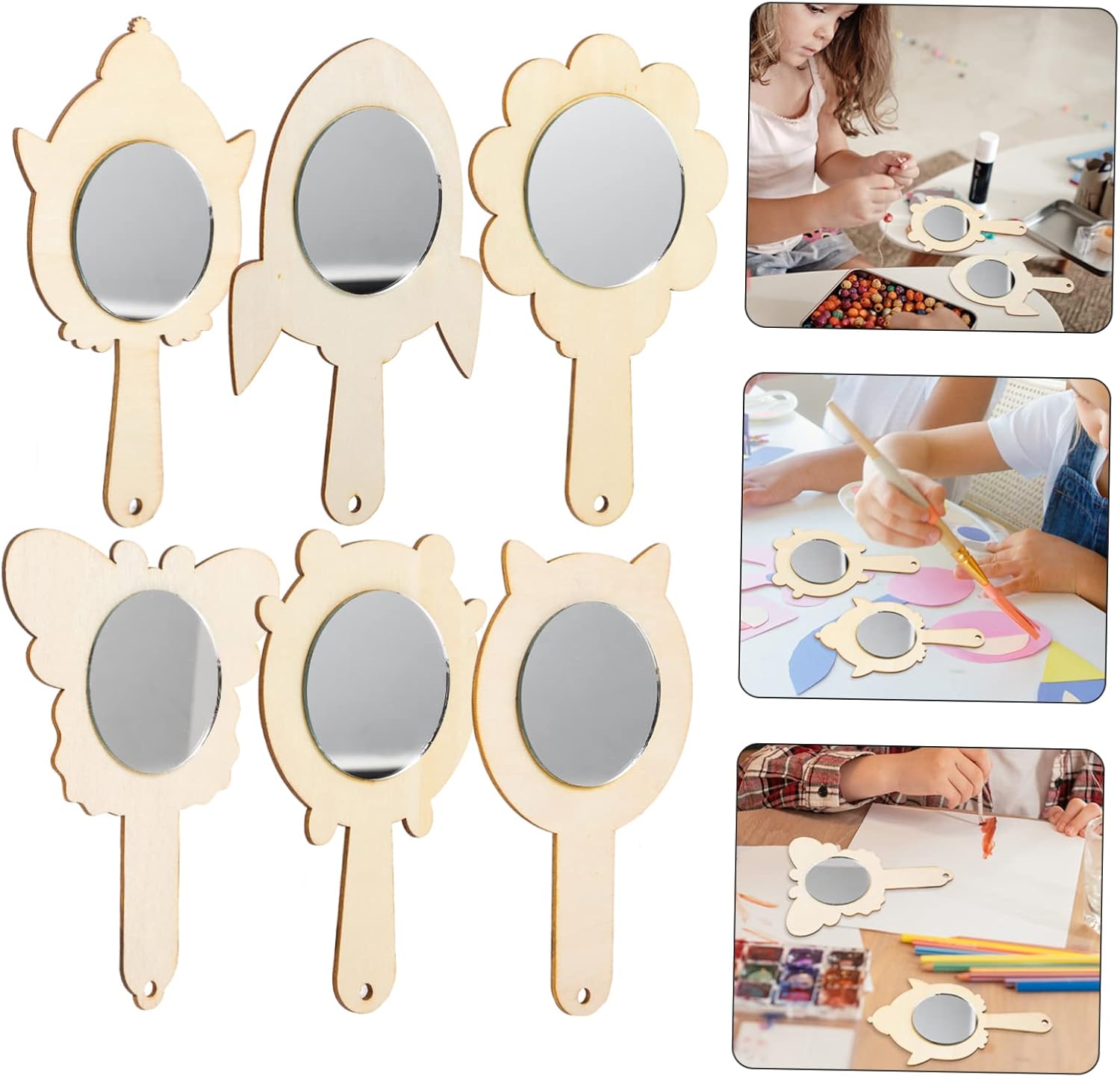 Specchi per bambini che dipingono: lo specchio portatile non finito è fatto di materiale di legno, senza sbavature, sicuro da tenere in mano per i bambini, piccolo specchio portatile Specchio in legno naturale: puoi usare penne colorate, argilla o altri strumenti fai da te per creare degli ornamenti su questo specchio di legno vuoto, giocattoli a specchio Specchio portatile non finito: aiuta a stimolare l'abilità pratica dei bambini e ad esercitare la loro creatività e capacità logica, giocattolo specchio fatto a mano Specchio fai da te: la lavorazione pregiata e l'aspetto gradevole ne assicurano la popolarità e la praticità, comodo per il fai da te, specchio rustico Specchio artigianale: lo specchio in legno può essere colorato o dipinto liberamente, può diventare un delicato lavoro artigianale dopo il tuo fai da te, specchio artigianale vuoto