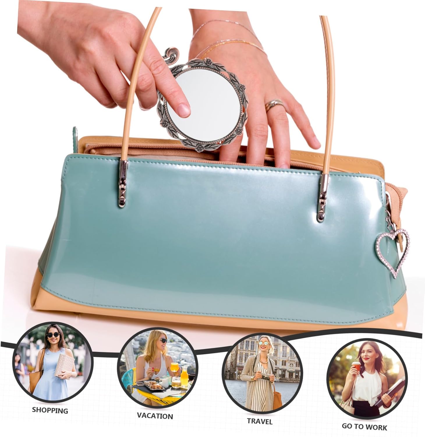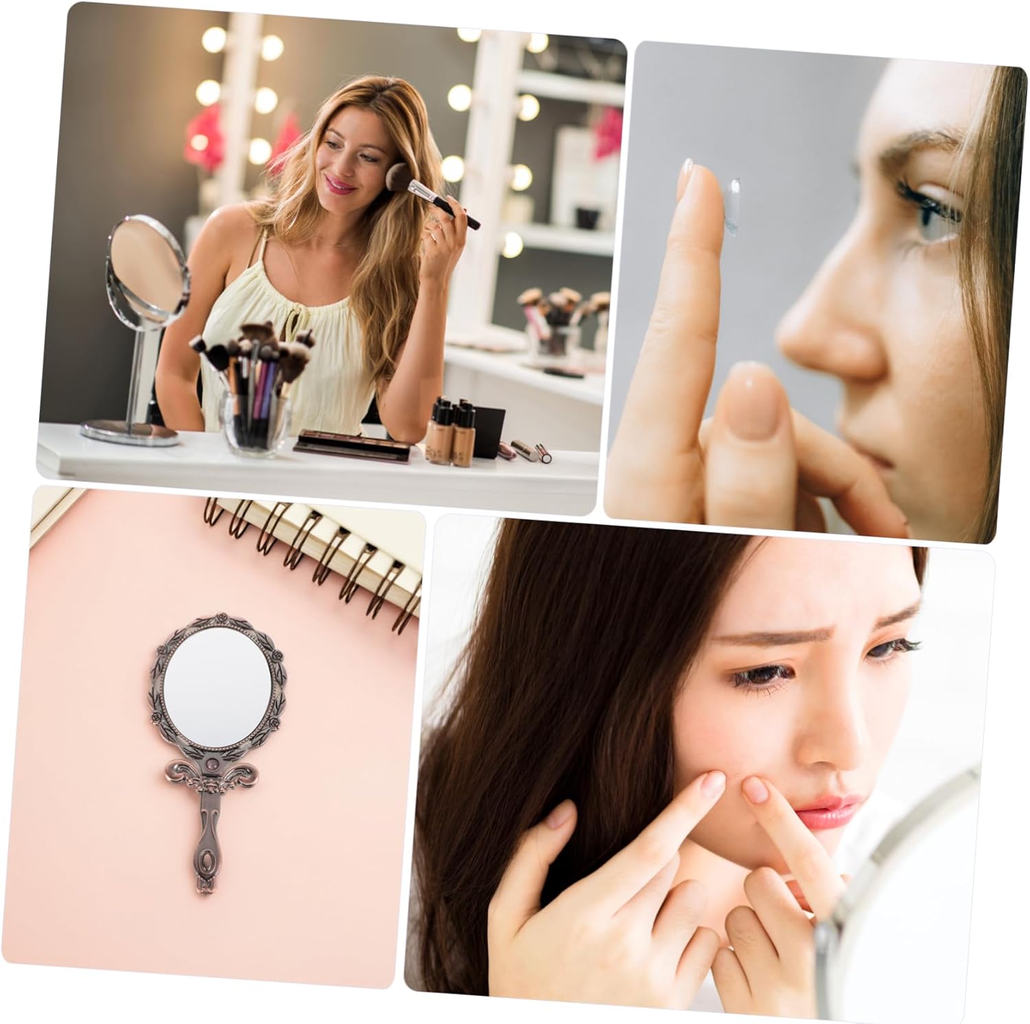 Vintage: lo stile retrò di questo specchio a mano porta un tocco di fascino vintage alla tua routine di bellezza, specchio a mano con manico, specchietti portatili Costruzione robusta: realizzato in metallo robusto, questo specchio resiste all'uso quotidiano, specchio per il trucco vintage, specchio da viaggio Ampiamente utilizzato: ampiamente utilizzato per il trucco, la camera da letto, il soggiorno, il bagno, l'ufficio e la gioielleria, specchio tascabile pieghevole in metallo, specchio a mano pieghevole Elegante e funzionale: lo stile antico lo rende un'aggiunta elegante ai tuoi accessori, piccolo specchio per il trucco, specchio a mano per il trucco Chiaro e luminoso: offre un riflesso chiaro e luminoso, rendendo facile perfezionare il trucco e l'acconciatura, specchio da trucco, specchio a mano in stile antico