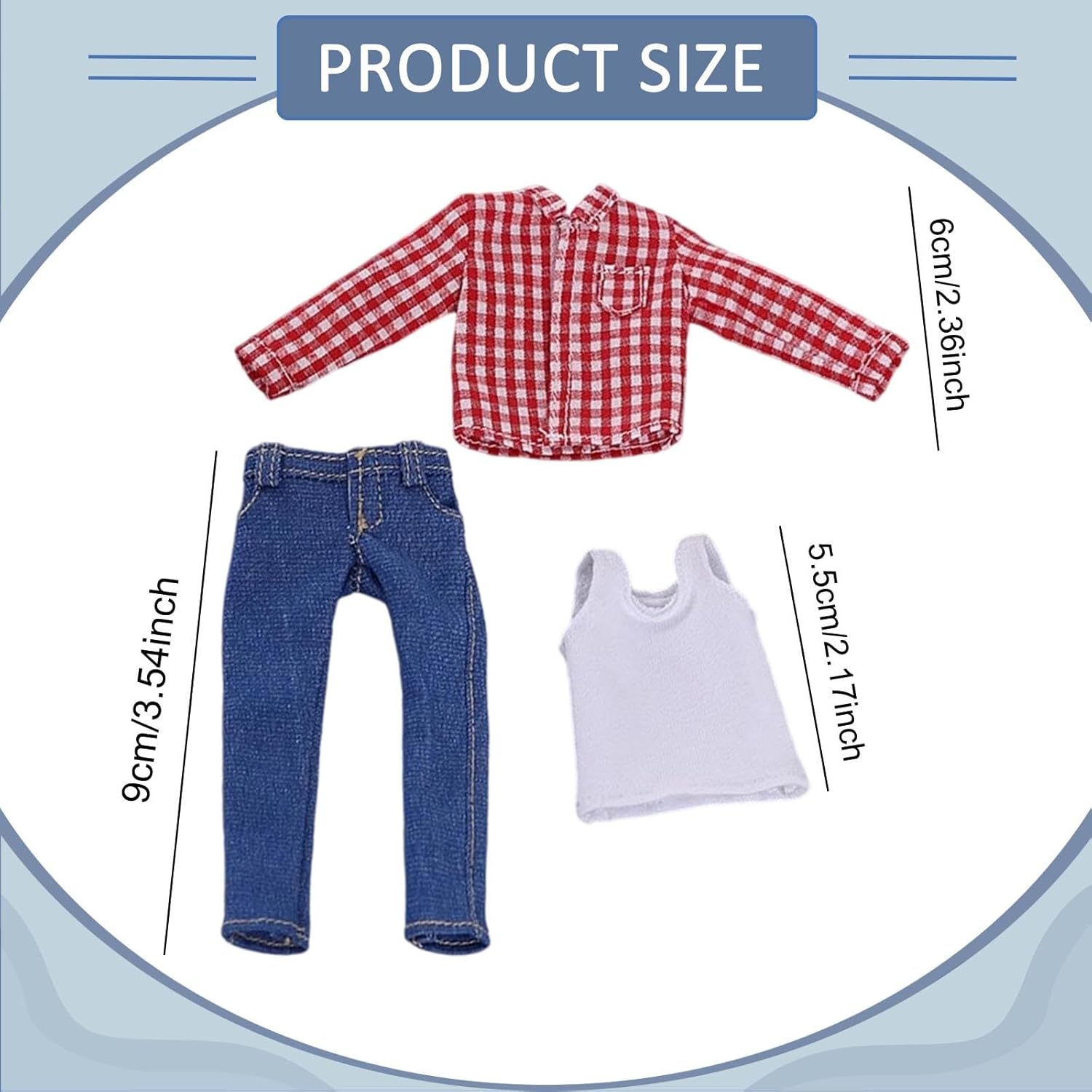 【Diverse combinazioni】: abiti casual da uomo possono essere abbinati ad altri accessori, aumentando la giocabilità della bambola e soddisfacendo diverse esigenze. 【Dettagli eccellenti】: i vestiti per figure maschili in 1/12 sono progettati specificamente per bambole maschili in 1/12. Grazie alla vestibilità e alle dimensioni perfette, si adattano alle bambole in modo appropriato e realistico. 【Dettagli realistici dei jeans】: l'abbigliamento maschile presenta jeans con dettagli delicati come pieghe , che aggiungono realismo e migliorano l'effetto visivo. 【Design casual ed elegante】: i vestiti da uomo in 1:12 sono caratterizzati da una canottiera abbinata a jeans, offrendo un look casual ed elegante per le bambole maschili in vari scenari espositivi. 【Tessuto di 】: i vestiti per bambole maschili in miniatura in 1/12 sono realizzati in tessuto di , morbido, robusto e con colori stabili.