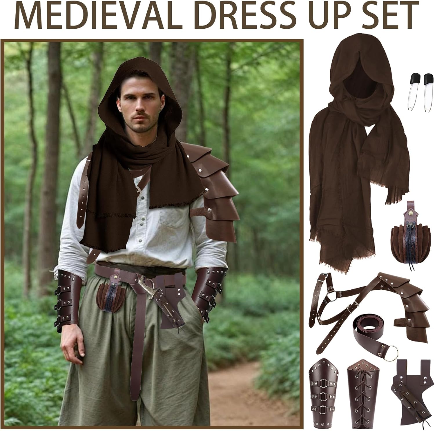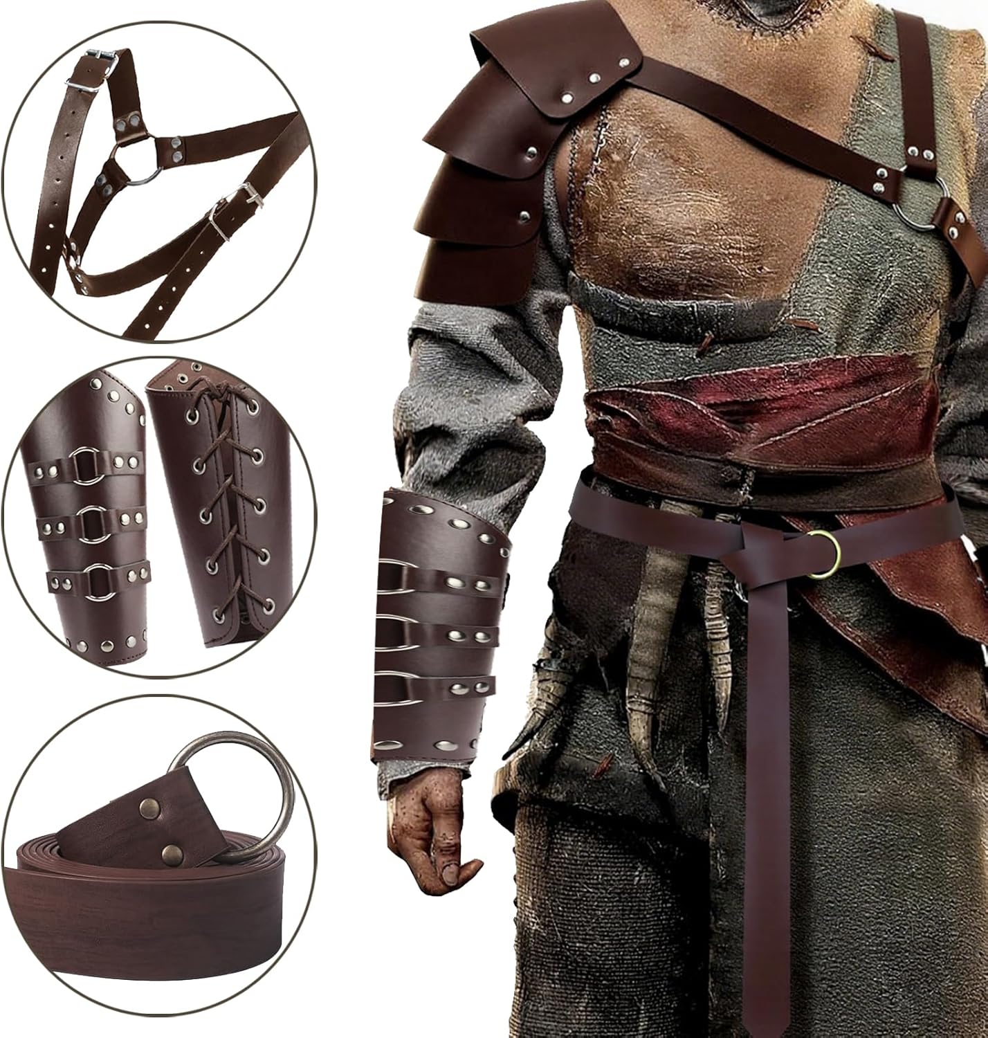 Abbigliamento vichingo, 6 pezzi di abbigliamento medievale per donne e uomini, protezioni per le braccia per tiro con l'arco, bracciali medievali, cintura medievale per donne, decorazione vichinga per costume vichingo cosplay di Halloween