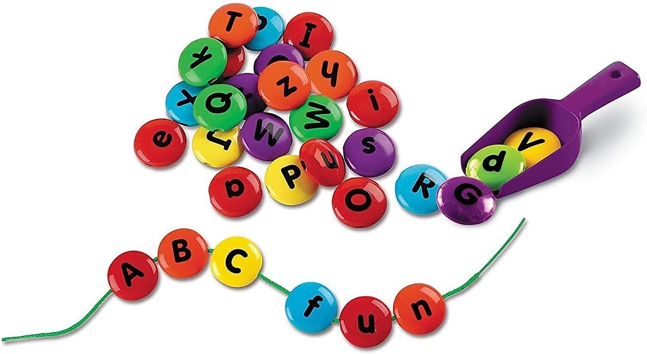Il design su entrambi i lati aiuta a rinforzare lettere maiuscole e minuscole I lacci possono essere utilizzati per formare parole, costruire la coordinazione occhio-mano e molto altro ancora Il barattolo di plastica tiene in modo sicuro tutti i pezzi tra le lezioni Il set include perline in plastica con lettere, lacci, barattolo e paletta Per bambini dai 2 anni in suSpecifiche
