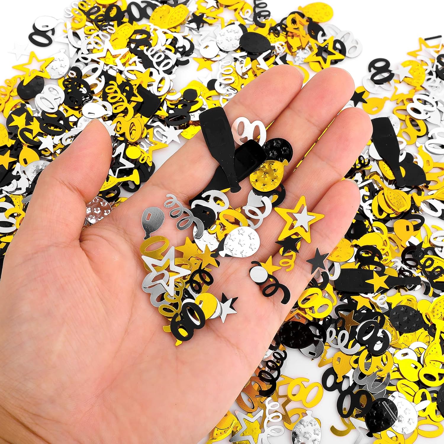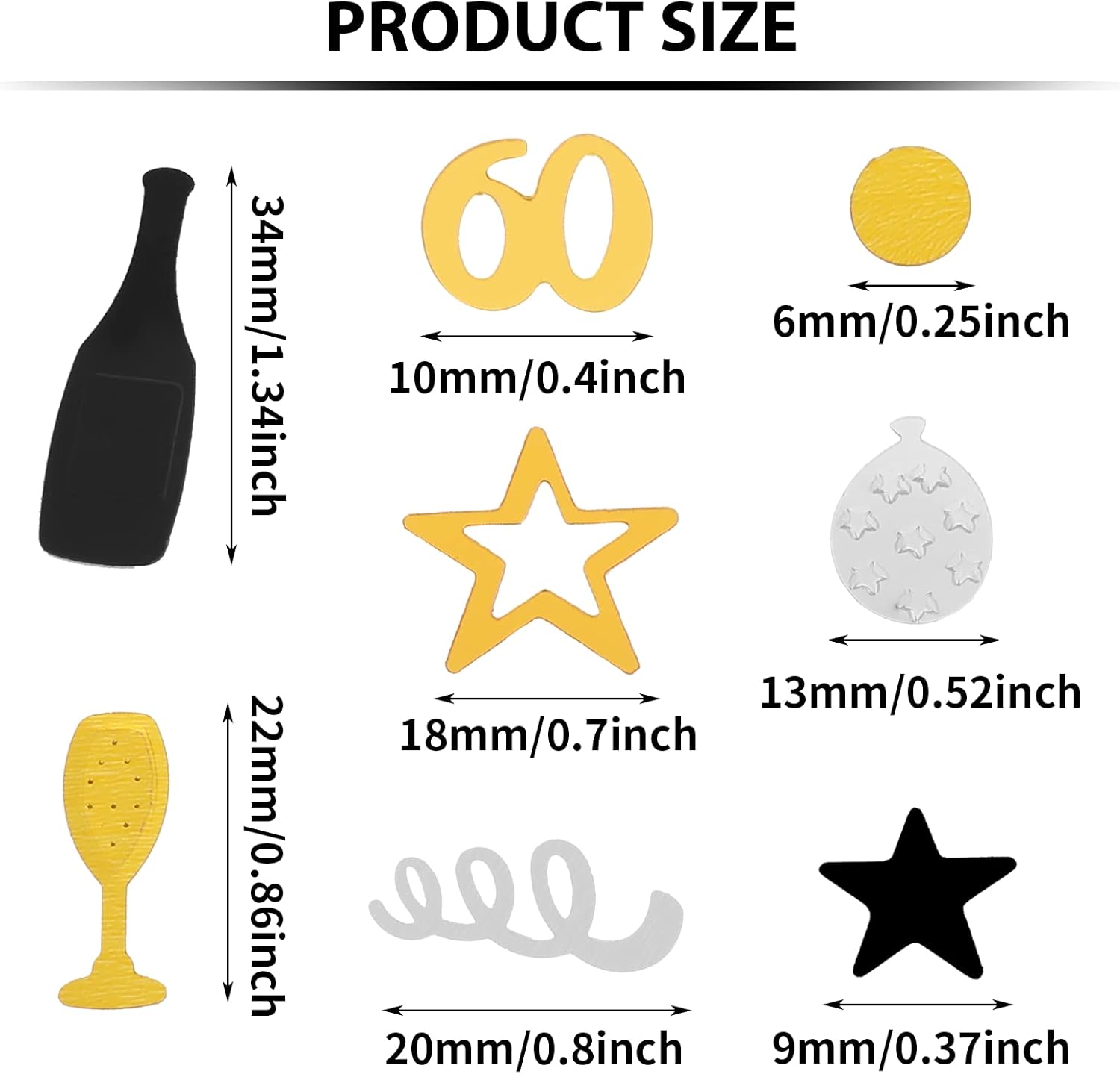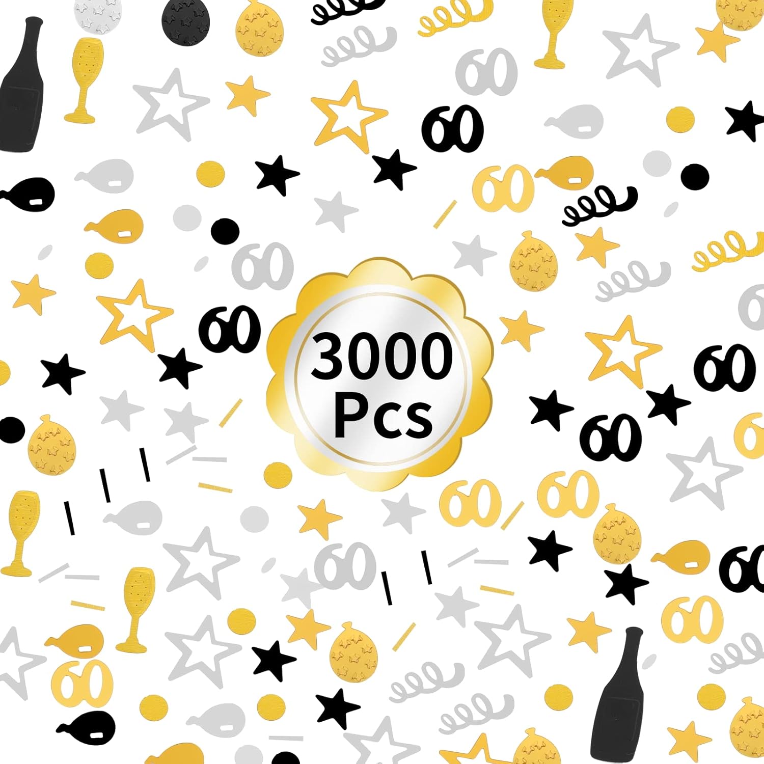 Grande quantità: Riceverai 3000 pezzi di coriandoli di buon compleanno in 8 forme diverse, quantità e stili sufficienti per decorare o celebrare il tuo 60° compleanno importante o anniversario di matrimonio, aggiungendo un'atmosfera festosa forte e piacevole alla tua festa Combinazione di colori classica: La classica combinazione argento, nero e oro di coriandoli per feste, i coriandoli da tavolo sono realizzati in PVC, delicati e raffinati, molto lucenti alla luce, facili da abbinare a qualsiasi tema e scena di attività Diversi stili di coriandoli: Il set di coriandoli include numero 60, palloncino, spirale, bicchiere di vino, bottiglia di vino, stella cava a cinque punte, stella a cinque punte e pois, dal design delicato, molto lucenti e adorabili, forme ricche e vivaci aggiungeranno molto divertimento al festival. Forniture per decorazioni per feste: questi coriandoli possono essere usati per festeggiare feste di compleanno, anniversari e qualsiasi altra occasione di celebrazione. Se hai intenzione di organizzare una festa di compleanno, questi coriandoli sono la scelta ideale per la decorazione. Altri usi: puoi anche stendere le colorate decorazioni di compleanno sul pavimento, sulla tovaglia, sugli involucri delle torte, oppure aggiungerle agli inviti alle feste e ai sacchetti per bomboniere per una sorpresa scintillante, rendi i tuoi oggetti distintivi e straordinari