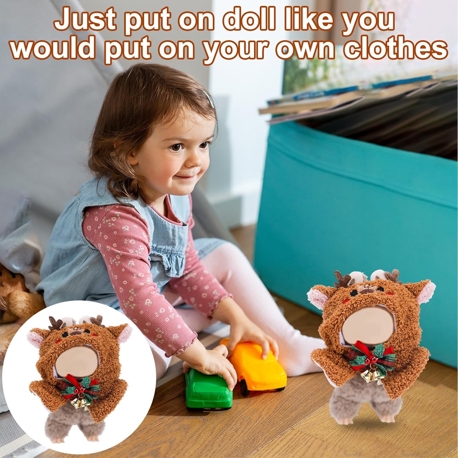 Elenco dei pacchetti: riceverai 1 abbigliamento per bambole di Natale, con un affascinante design di renne con accenti festivi, tra cui una campana jingle legata ai vestiti per un tocco in più di magia delle vacanze. Materiale del prodotto: questo outfit per bambole è realizzato con materiali in tessuto per la pelle che resistono allo sbiadimento e al pilling. La trama ultra morbida migliora la coccole della tua bambola garantendo al contempo la durabilità per uso a lungo termine. Dimensione del prodotto: il costume della bambola misura circa 15x10cm, compatibile con bambole da 17cm. È progettato per adattarsi perfettamente, offrendo un look comodo ed elegante per la tua bambola durante le festività natalizie. Design festivo: l'adorabile tema dei cartoni animati delle renne aggiunge un tocco affascinante e giocoso al guardaroba della tua bambola, perfetto per diffondere allegria per le vacanze e migliorare il tuo display natalizio. Ottima idea regalo: un regalo fantastico per giovani collezionisti e appassionati di bambole, questo carino vestito natalizio è il perfetto imbottitore di calze o regalo per le vacanze per gli amanti delle bambole.