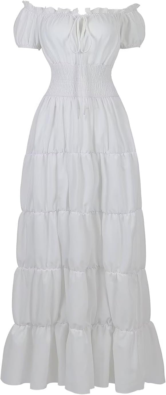 Materiale dell'abito medievale: Poliestere Lunghezza dell'abito medievale: Lunghezza del pavimento Colore dell'abito medievale: Nero, Viola, Verde, Rosso scuro, Bianco Tipo di manica dell'abito medievale: Maniche lunghe a campana Stile dell'abito medievale: Rinascimento / Medievale / Gotico / Vittoriano / Retro / Costume di Halloween Abito medievale Design con lacci, vita alta, dettaglio manica lunga a campana, lunghezza del pavimento, stile vintage, costume medievale rinascimentale irlandese, abito cosplay di Halloween, abito gotico. festa ecc. L'abito in costume da regina principessa medievale è un abito intero e c'è una cintura in vita. Tabella delle taglie dell'abbigliamento medievale (pollici/cm): Busto: pollici/cm Vita: pollici/cm A causa della misurazione manuale, consentire una deviazione di 1-3 cm. Il colore reale dell'articolo potrebbe essere leggermente diverso dalle immagini mostrate sul sito a causa di molti fattori come la luminosità del monitor e la luminosità della luce. "