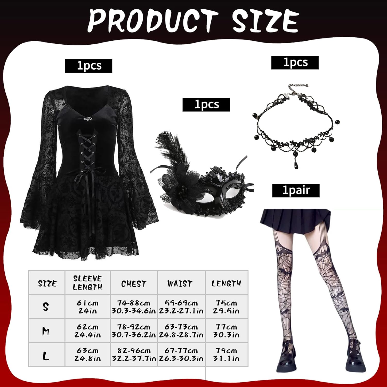 Descrizione prodotto Avviso di sicurezza per abito gotico da donna Nessun avviso di sicurezza