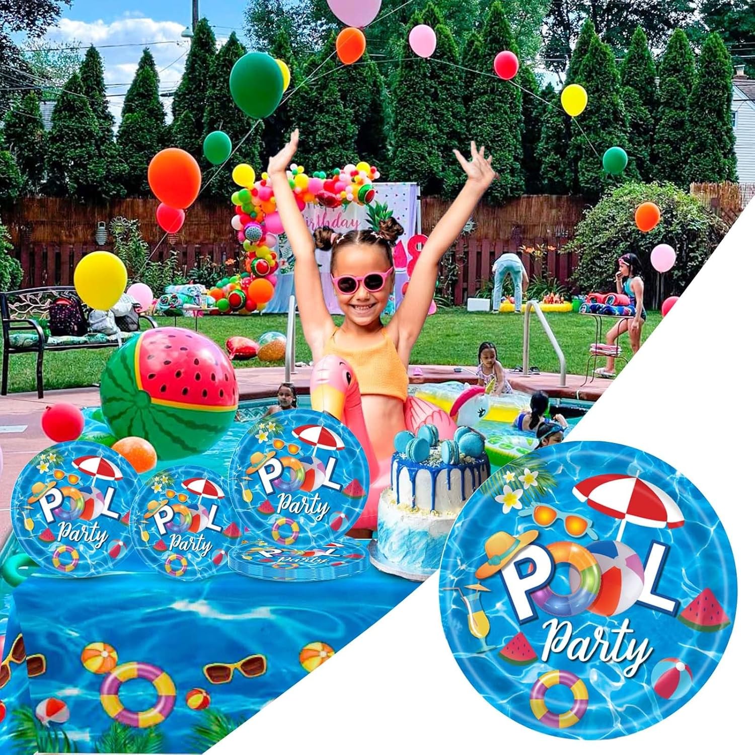Qualità: questi piatti di carta estivi per feste in piscina sono tutti realizzati con bei materiali e perfetti come decorazioni per compleanni in spiaggia e decorazioni per feste estive. Design unico: la nostra decorazione per la tavola per feste in piscina è progettata con un tema piscina, le stoviglie da piscina sono basate sul rullo d'acqua ed è dotata di anelli da nuoto colorati, palline da spiaggia, occhiali da sole, sedie da salotto e altri modelli, che possono creare una forte atmosfera estiva in piscina per la tua festa in piscina. Articoli per la tavola per feste in piscina: questa tavola estiva per feste in piscina serve fino a 10 ospiti Scenari applicabili: il set di stoviglie per feste in piscina per l'estate in questi articoli a tema per feste in piscina è pratico e bello e è molto adatto per feste in piscina, feste estive a tema, feste estive, feste a spruzzo, ecc. Inviare questo squisito vassoio di carta a tema estivo ad amici o bambini durante l'estate sarebbe una buona scelta