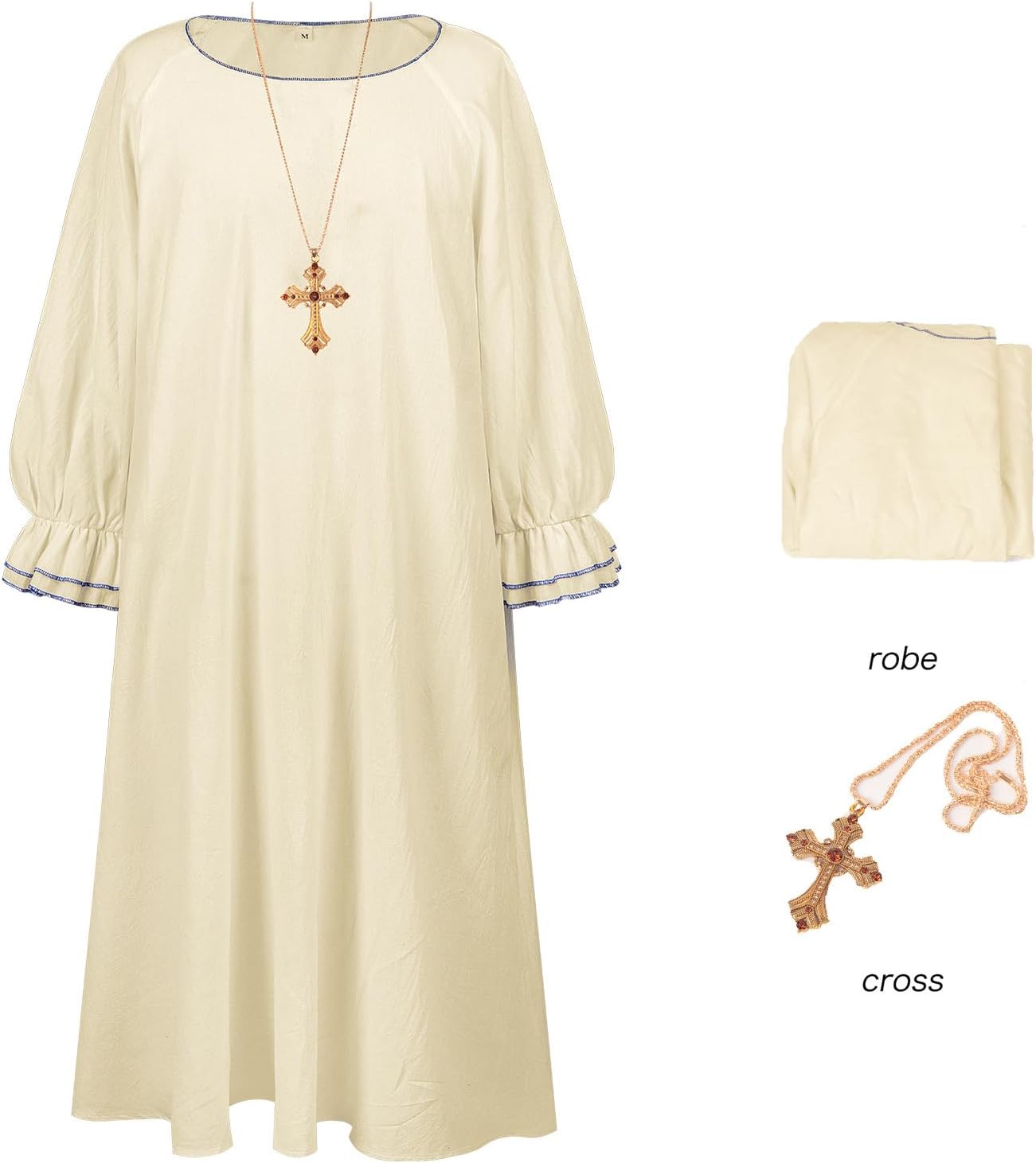 Questo costume da prete offre un aspetto autentico per cerimonie religiose e ambientazioni clericali, rendendolo adatto a uomini e donne che cercano un abbigliamento appropriato per rituali in chiesa o eventi battesimali. Il design adattabile si integra facilmente nelle celebrazioni di Halloween, incontri di cosplay e matrimoni a tema, offrendo versatilità e stile distintivo. Un capo ideale per chi desidera un look rispettoso e formale in diverse situazioni. Materiale: poliestere Dimensione: media (lunghezza 123 cm/48,4 pollici, torace 135 cm/53,1 pollici, spalla 50 cm/19,6 pollici, 73 cm/28.7in) Peso: circa 370 g Nota: A causa e diverse impostazioni di illuminazione e schermo, il colore 'oggetto può essere leggermente diverso dall'immagine. A causa e diverse misurazioni manuali, consentire una differenza di 1-2 cm di dimensioni. Elenco dei prodotti: Priest Costume Men *1 pezzo Collana a croce *1 pezzo