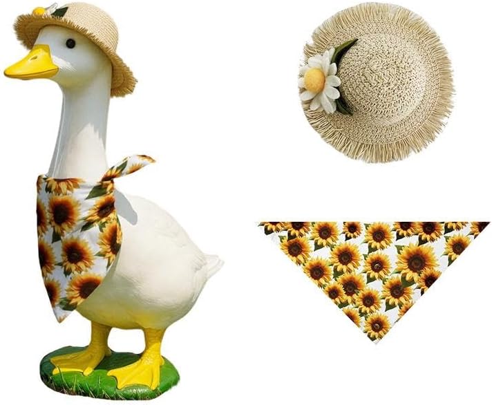 Allegro tema girasole: irradia positività e gioia: i girasoli simboleggiano luminosità, calore e bellezza duratura, qualità che danno vita alla tua oca portico con una personalità vivace e ottimista. Questo arredamento a tema solare attira immediatamente l'attenzione, trasformando il tuo spazio esterno in un display accogliente e accattivante che irradia energia positiva per tutta la stagione. Set completo abbinato: ciondolo a forma di fattoria, completamente coordinato: questo set progettato con cura include un cappello di paglia naturale con eleganti bordi sfrangiati e una sciarpa triangolare abbinata decorata con vivaci stampe di girasoli. Insieme, creano un look armonioso dalla testa ai piedi che esalta il carattere dell'oca e abbraccia pienamente un'estetica rustica di campagna, perfetta per uno stile esterno coeso e pronto per le immagini. Materiali di alta qualità adatti alle intemperie: costruito per durare all'aria aperta: il cappello di paglia presenta una trama resistente, naturalmente strutturata che resiste all'usura, mentre la sciarpa triangolare è realizzata in tessuto morbido e resistente allo sbiadimento con colori nitidi e di lunga durata. Progettati per un uso esterno prolungato, entrambi i pezzi mantengono il loro aspetto luminoso e l'integrità strutturale, anche sotto l'esposizione al sole e alle intemperie. Stile casual rurale distinto: porta la campagna a casa: ispirato alla rilassata vita in fattoria, questo set emana un fascino rilassato e rustico. Migliora senza sforzo il tuo portico o giardino con un'atmosfera calda e invitante, infondendo il tuo spazio esterno con la semplice bellezza e le vibrazioni serene della vita rurale, indipendentemente da dove vivi. Forte impatto decorativo: eleva l'estetica del tuo portico: più che semplici accessori, questi pezzi trasformano la tua statua d'oca in un'elegante espressione di personalità e gusto. Con il loro fascino artistico e il loro design gioioso, trasformano un normale ornamento da prato in un punto focale decorativo straordinario, aggiungendo carattere unico e fascino senza tempo al tuo portico, cortile o giardino.