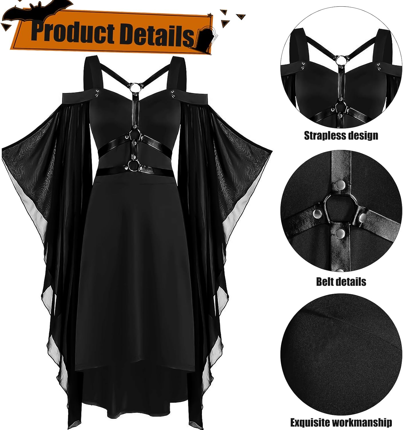 Descrizione prodotto L'abito nero con maniche svasate è realizzato in materiale morbido e ben rifinito, il taglio è aderente per sottolineare la figura, sia che lo si indossi da soli sia che lo si regali. Dalle feste di Halloween alle feste a tema, questo abito è perfetto per diverse occasioni, lo stile gotico lo rende un capo unico che non passerà inosservato, l'orlo irregolare dà all'abito un tocco di modernità e mistero, è un'ottima scelta per una festa o per essere indossato tutti i giorni! Specifiche: Materiale: Poliestere Colore: Nero Peso: 550g Dimensioni: 33 x 22.5 x 3cm Contiene: 1 X Vestito gotico nero 1 X Maschera per gli occhi con pizzo Avviso di sicurezza Nessuno