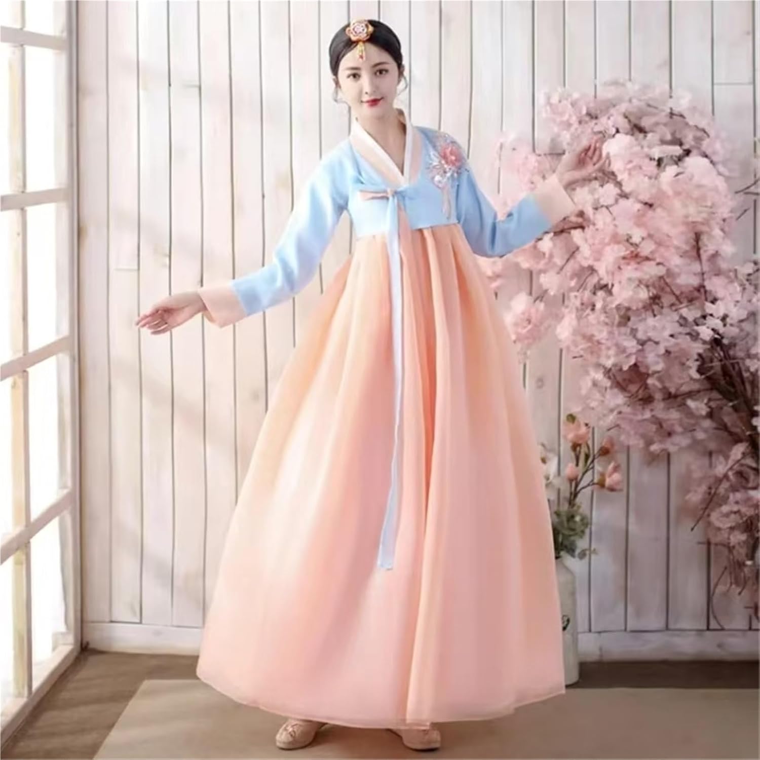 Lunghezza manica (cm): lunga Tipo: abito Hanbok Genere: DONNE Materiale: COTONE, POLIESTERE Tipo di articolo: Abbigliamento for l'Asia e le isole del Pacifico Uso speciale: abbigliamento tradizionale stagione: autunno primavera