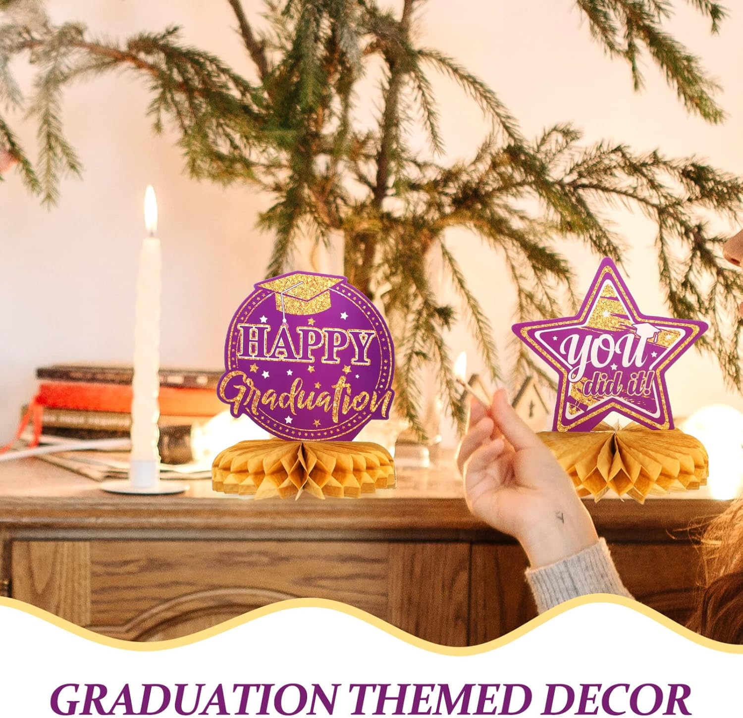 【Decorazioni per la laurea】 I centrotavola per la laurea sono squisitamente progettati con interessanti elementi di laurea, quindi tutti adoreranno i design chic. 【CENTROTAVOLA A NIDO D'APE DI LAUREA】Adatto per feste di laurea, può essere utilizzato come decorazione di sfondo per creare un'atmosfera allegra alla festa. 【DECORAZIONI PER LA TAVOLA DI LAUREA】 I centrotavola per la tavola di laurea sono squisitamente progettati con interessanti elementi di laurea, quindi tutti adoreranno i design chic. Decorare la casa delle feste con i nostri centrotavola a nido d'ape sarà un grande successo alla tua festa. 【CENTROTAVOLA DI LAUREA】 Aggiungi un po' di atmosfera posizionando le decorazioni per la festa di laurea a nido d'ape al centro del tavolo, le fantastiche decorazioni di laurea sono abbastanza impressionanti da essere notate. 【COPERTURA DELLA TAVOLA DI FINITURA】 Decorare la casa delle feste con i nostri centrotavola a nido d'ape sarà un grande successo alla tua festa.