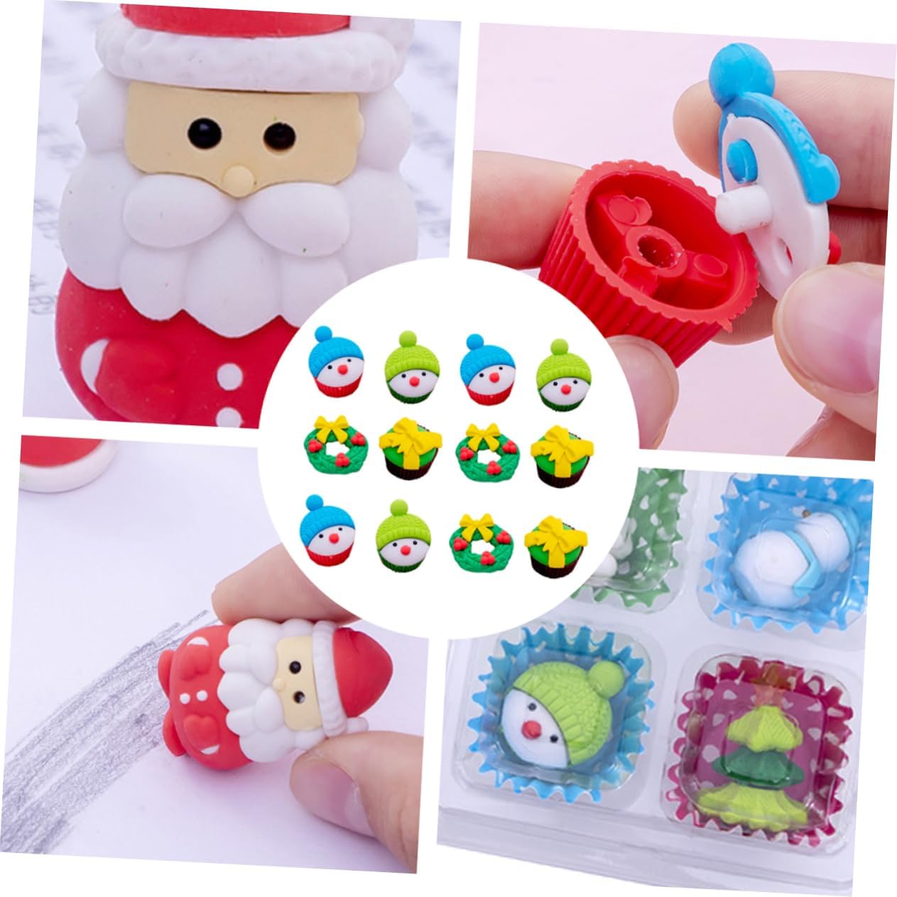 Gomme cancellare per bambini e studenti: carine e il design lo rendono più attraente per bambini e studenti.- Gomma per inchiostro natalizia: gomme cancellare natalizie, imbottiture per calze natalizie, pupazzi di neve, gomme cancellare per matite, gomme cancellare per caratteri natalizi, per bomboniere natalizie. Oggetti di scena per foto di bambini adulti: gomme cancellare natalizie carine e il design lo rende più attraente per bambini e studenti. Riempitivi per sacchetti per feste di natale: con il design della forma, le dimensioni mini lo rendono adatto ai bambini con cui giocare. Giocattoli per borse festa di natale: un perfetto per bambini e studenti.