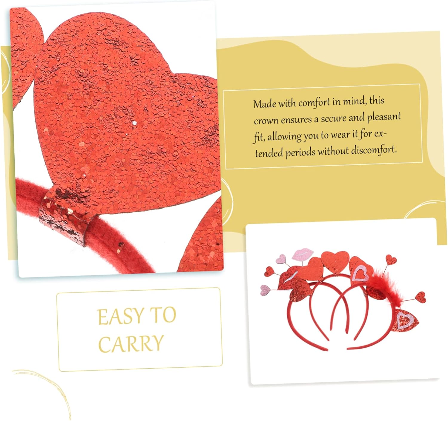 include 3 x fascia per Caratteristiche -Informazioni sul prodotto: fascia per -Molteplici opzioni : offre una varietà possibilità per adattarsi a diversi e preferenze della fascia per feste -Materiale: lanugine, filo , fascia in ABS per -Styling : facile da indossare e da togliere, adatto a tutti i tipi e stili decorazioni -Dimensioni: 22,00X15,50X1,40 cm/8,65X6,09X0,55 pollici fascia per per -Comfort duraturo: realizzate per garantire comfort e durata, fasce sono progettate per all'uso regolare. Decorazioni per -Dimensioni: 21,00X18,00X1,40 cm/8,25X7,07X0,55 pollici fascia per festa -Colore: fascia per con a forma rosso -Dimensioni: 20,00X19,00X1,40 cm/7,86X7,47X0,55 pollici accessori per fasce per feste - Perfetto per feste: per decorazioni delle feste , ti a distinguerti con un cerchietto - : l'atmosfera del tuo con graziose fasce per a forma con paillettes e corone cuori. Descrizione della merce cerchietti per Migliora look con questi eleganti cerchietti a tema . Accessori per fotografiche per feste, fotografiche o come accessorio decorativo, questi cerchietti ti faranno sicuramente distinguere e . cerchietto a Progettato con paillettes scintillanti, aggiunge un tocco giocoso a qualsiasi outfit