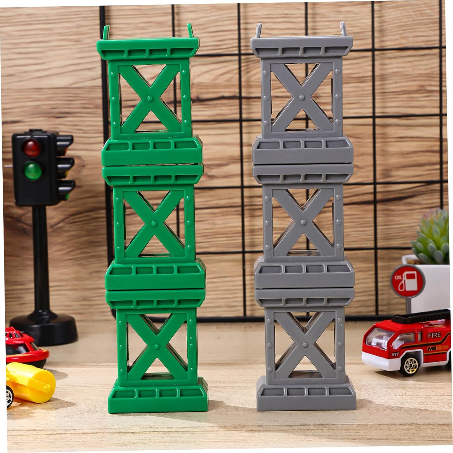Accessori ferroviari: questi ponti ferroviari sono compatibili con una varietà di piccoli set di treni, aggiungendo un elemento di divertimento al tuo tempo di gioco, supporto per binari ferroviari, supporto per ponte per binari ferroviari Con cui giocare: questi accessori per binari ferroviari includono più ponti in diversi colori, consentendo diverse combinazioni e possibilità, supporti per binari ferroviari in plastica, supporti per ponti di treni giocattolo Squisito e compatto: sono progettati per essere sia squisiti che compatti, rendendoli adatti a vari set di treni, montanti per ponti ferroviari, supporti per ponti Robusti e resistenti: sono realizzati con una struttura robusta e possono sopportare il peso del tuo trenino senza rompersi, supporti per binari del treno, connettori per binari del treno Design impilabile: i pezzi del binario del treno possono essere impilati all'altezza desiderata, dandoti la flessibilità di creare la tua unica, supporto per treni giocattolo, supporti per binari del treno