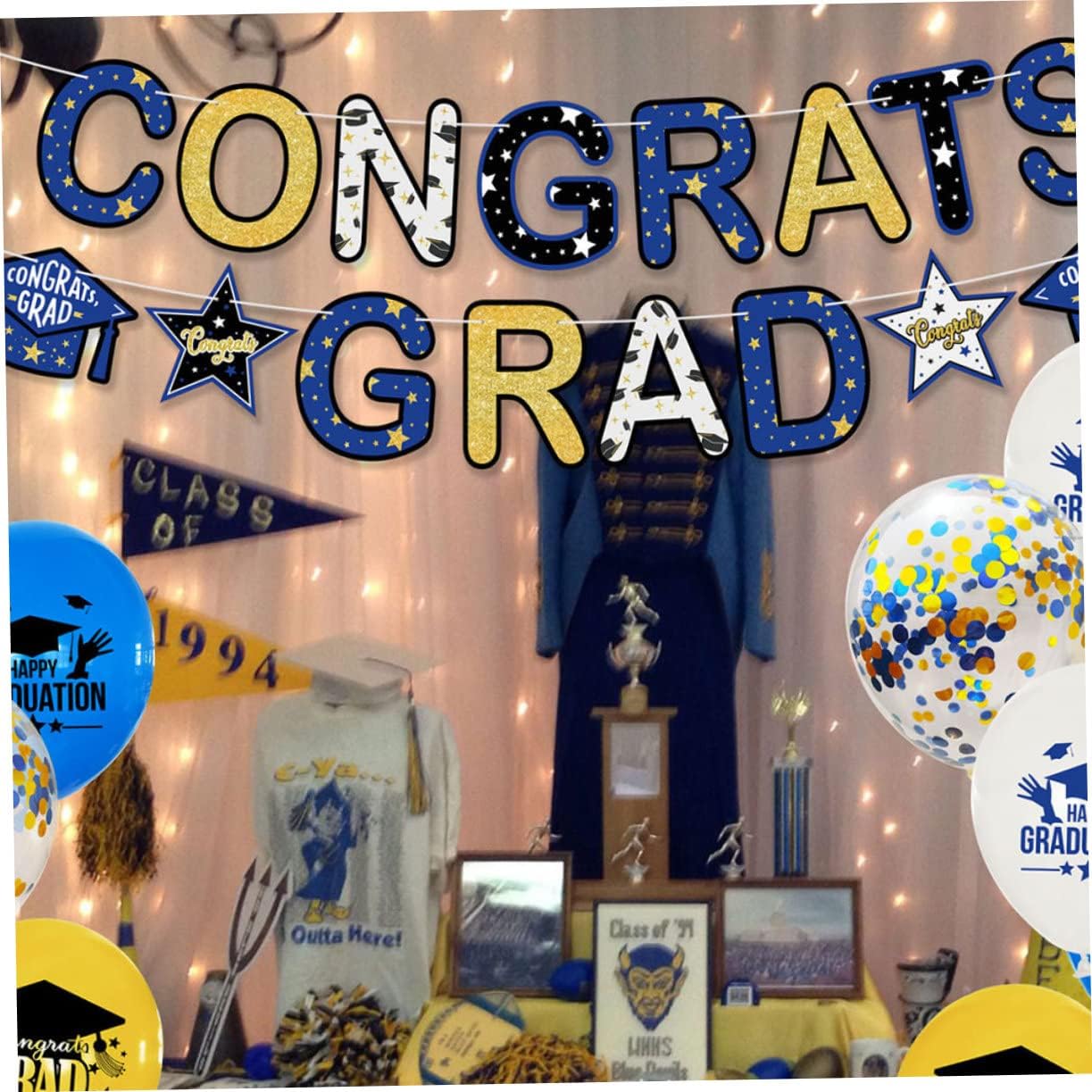 BANNER DI LAUREA IN ORO BLU: striscione di laurea per una festa di laurea per creare un'atmosfera festosa alla festa. BANNER DI LAUREA NERO: Con un forte senso della decorazione, il nostro banner di laurea può essere un prodotto essenziale per le feste di laurea, con un buon effetto decorativo. BANNER FINALE: questo banner può essere posizionato all'interno o all'esterno in qualsiasi angolo, sullo sfondo di una festa, su una finestra o su un muro per aggiungere un'atmosfera finale al tuo evento! DECORAZIONI PER FESTE DI LAUREA: striscione di laurea realizzato in materiale cartaceo di alta qualità, durevole e affidabile per un uso duraturo. SIAMO COSÌ ORGOGLIOSI DEL BANNER: CLASSE DI DECORAZIONE DEL 2023 --- 🎓con un forte senso della decorazione, può essere uno dei prodotti essenziali per le feste di laurea, buon effetto decorativo. Queste decorazioni per il diploma di scuola superiore 2023 pongono decorazioni per la laurea in età prescolare sullo sfondo di una cabina fotografica.