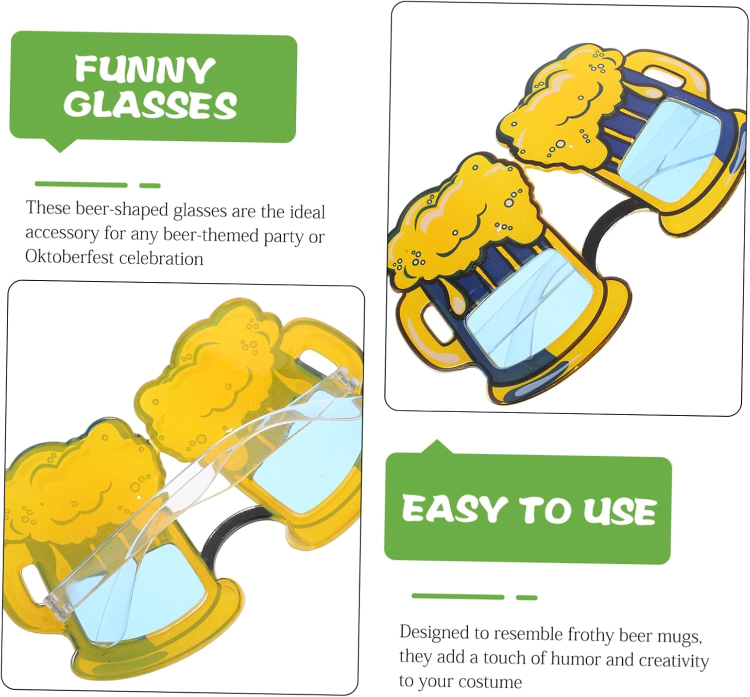 Design eccezionale: boccale di birra dal design unico che ti rende l'anima della festa, bicchieri decorativi originali, accessori per l'oktoberfest Vestibilità comoda: leggero e confortevole, ideale da indossare tutta la notte, accessori per feste con cabine fotografiche, occhiali da sole per feste Indossalo comodamente: leggero e confortevole, senza affaticare gli occhi, decorazione per feste, bicchieri oktoberfest a forma di birra Vestibilità comoda: leggeri e comodi, non causano fastidio durante l'uso, occhiali da festa divertenti, decorazioni per feste dell'oktoberfest Leggeri e comodi: progettati per il comfort, non esercitano pressione sugli occhi, articoli per feste dell'oktoberfest, occhiali da cabina fotografica originali
