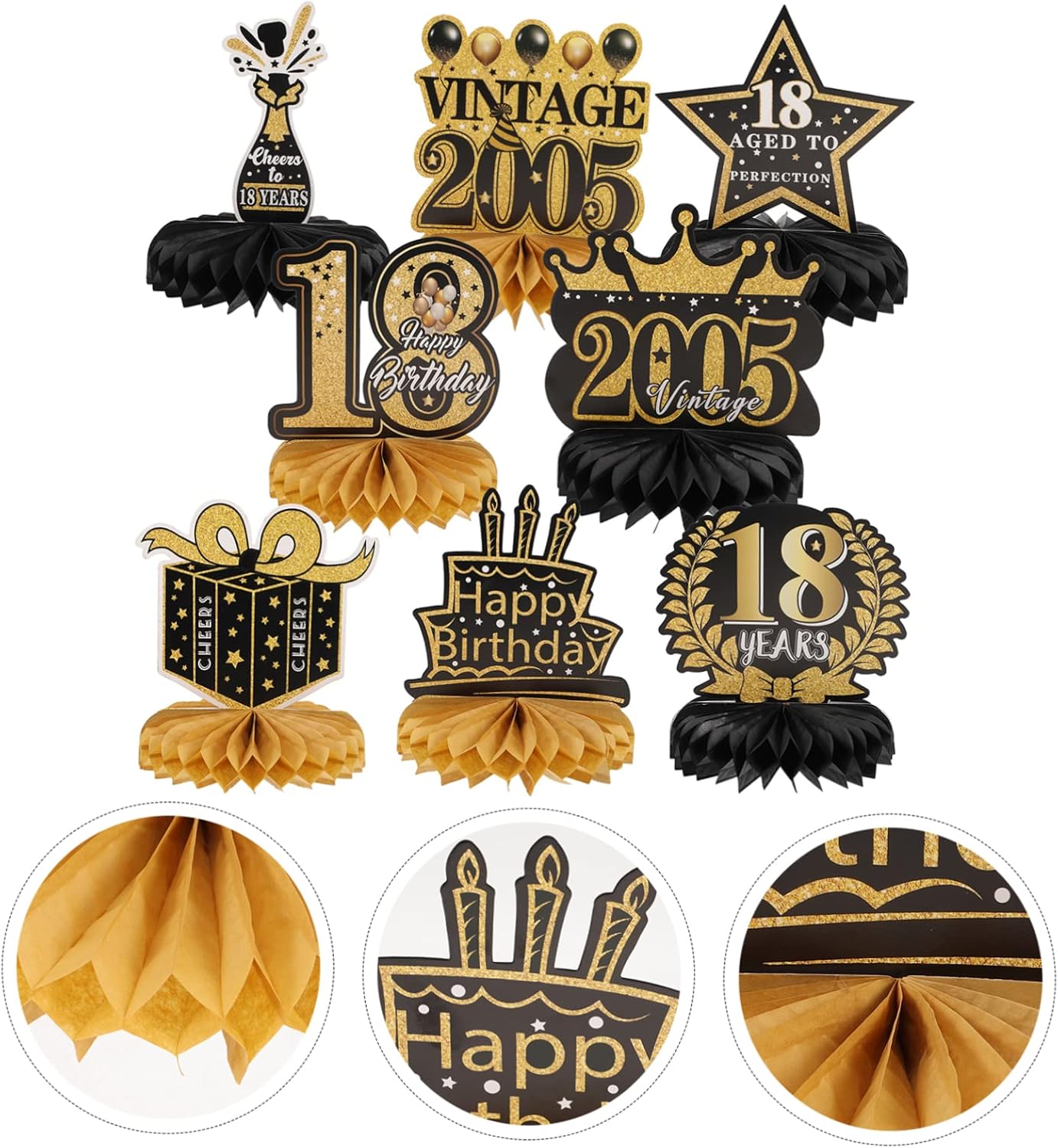 DECORAZIONI DI COMPLEANNO - decorazioni per feste di compleanno in oro nero bellissimi oggetti di scena per foto, decorativi e chic, delicati e creativi, buone decorazioni per festival. CENTROTAVOLA A NIDO D'APE PER DICIOTTO COMPLEANNI: bellissimi oggetti di scena per foto, decorativi e chic, delicati e creativi, buone decorazioni per festival. OGGETTI DI SCENA PER IL COMPLEANNO: l'arredamento a nido d'ape può posizionato sul desktop, sul o appeso al soffitto, DICIOTTO OGGETTI DI SCENA PER CABINE FOTOGRAFICHE DI COMPLEANNO: decorazioni per feste di compleanno in oro nero perfette decorazioni per feste di compleanno o regali di Natale per portare gioia a te e ai tuoi ospiti. DECORAZIONI PER DESKTOP DI COMPLEANNO: puoi anche usare questi ornamenti per scattare foto più e lasciare momenti indimenticabili.