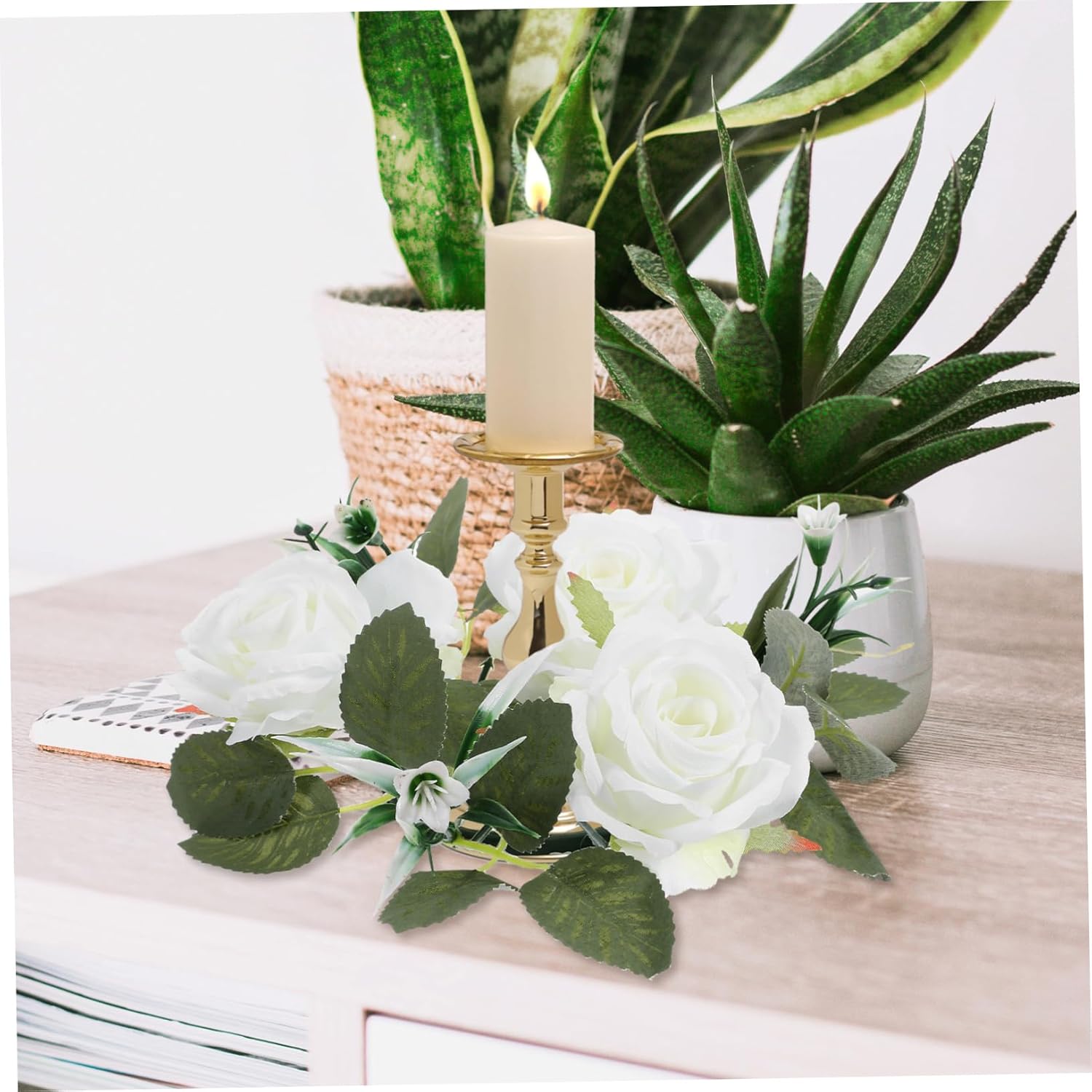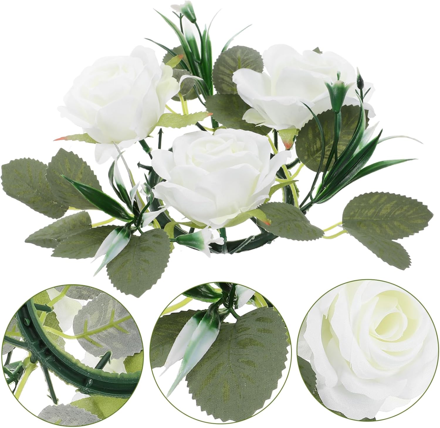 Centrotavola per tavoli: illumina l'atmosfera della festa, crea più dolce e romantico per la festa e la casa, oggetti di scena per il layout del matrimonio Anelli di candele per l'arredamento: realizzati con materiali stabili, la ghirlanda di candele presenta un aspetto realistico, aggiungendo un tocco di chic alla tua festa, anelli di ghirlande di candele Centrotavola: spezza la noiosa sensazione di spazio, pieno di stile, adatto a diverse scene di abbinamento spaziale, anelli di candele floreali Anelli per candele: ottima fattura, prestare la massima attenzione ad ogni dettaglio per conferirgli un aspetto gradevole e accattivante, ghirlanda da tavolo Anelli per candele con foglie artificiali: dimensioni leggere e portatili, la ghirlanda può essere appesa facilmente muro, alla porta o appoggiata sul tavolo, può anche essere utilizzata come anello per ghirlande di candele, anelli per candele per pilastri