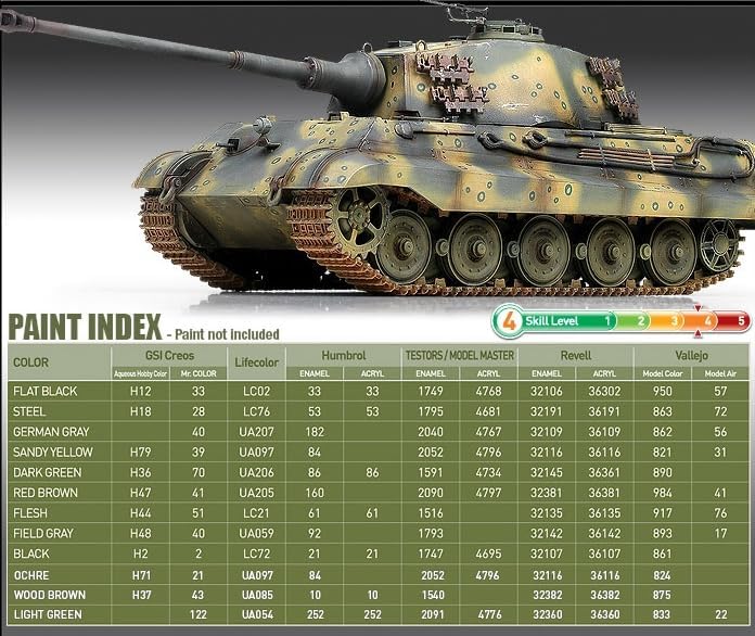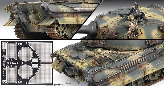 🛡️ Design storicamente accurato di produzione tardiva - Include caratteristiche come pignoni a 18 denti e layout semplificato della torretta. 418 parti totali - Offre una costruzione dettagliata con 406 componenti in plastica e 12 PE. Sistema di binari semi-colleganti: assemblaggio binario bilanciato che combina realismo e tempo di costruzione gestibile. Decalcomanie per acquascivoli Cartograf - Due opzioni di decalcomanie premium per schemi mimetici della fine guerra. Include due figure complete: un comandante e un soldato di fanteria in uniformi tedesche della seconda guerra mondiale. Istruzioni facili da seguire: il manuale visivo chiaro supporta un montaggio fluido anche per costruzioni avanzate.