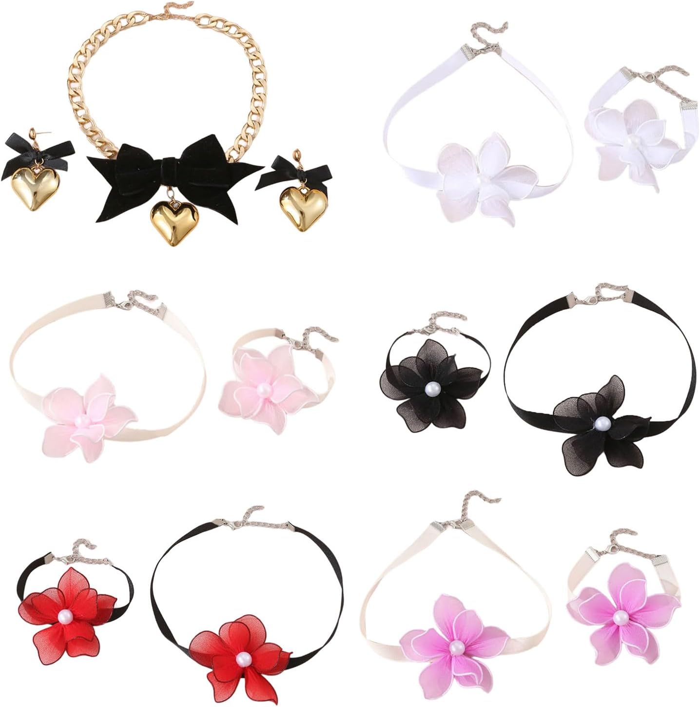Accessori alla Collana con ciondolo a forma farfalla e cuore e bracciale elegante set gioielli per donne e ragazze Caratteristiche: Questo set gioielli presenta collana e un braccialetto con ciondolo a forma cuore con fiocco, che aggiungono fascino a qualsiasi look. Realizzato in lega qualità, è resistente sbiadimento. La collana e bracciale possono essere indossati separatamente o insieme, permettendoti creare stili diversi. Perfetto da indossare ogni giorno o come regalo. Questo set gioielli è adatto a donne tutte le età che apprezzano un design carino elegante. Indossalo in varie occasioni come feste, appuntamenti o attività quotidiane per mettere in mostra tuo gusto personale in termini tuo look con questo elegante set gioielli, caratterizzato da collana e un braccialetto con ciondolo a forma cuore con fiocco. suo design unico lo rende un accessorio elegante per ogni individuo della Specifiche Componente: lega Misurare: Lunghezza collana cuore con fiocco: 37,5+4,5 cm/14,76+1,77 pollici Ciondolo con collana a cuore e fiocco: 11 cm/4,33 pollici Collana fiori: 34+5 cm/13,38+1,96 pollici Bracciale floreale: 17,5+5 cm/6,88+1,96 pollici La confezione include: 1 set collana e braccialetto Nota: 1.Si prega consentire errori 1-2 cm dovuti alla misurazione manuale, assicurarsi che non ti dispiaccia prima ordinare. 2.A causa della differenza tra diversi monitor, l'immagine potrebbe non riflettere colore effettivo articolo