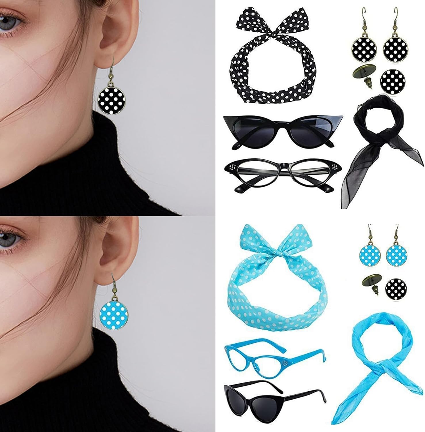 Accessori anni '50 per le donne anni '50 accessori costume sciarpa occhi di gatto occhiali bandana cravatta fascia orecchini