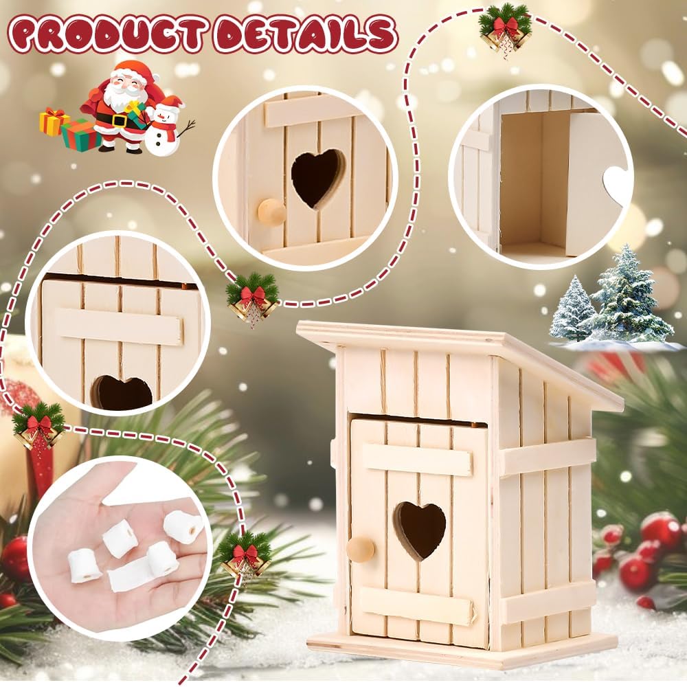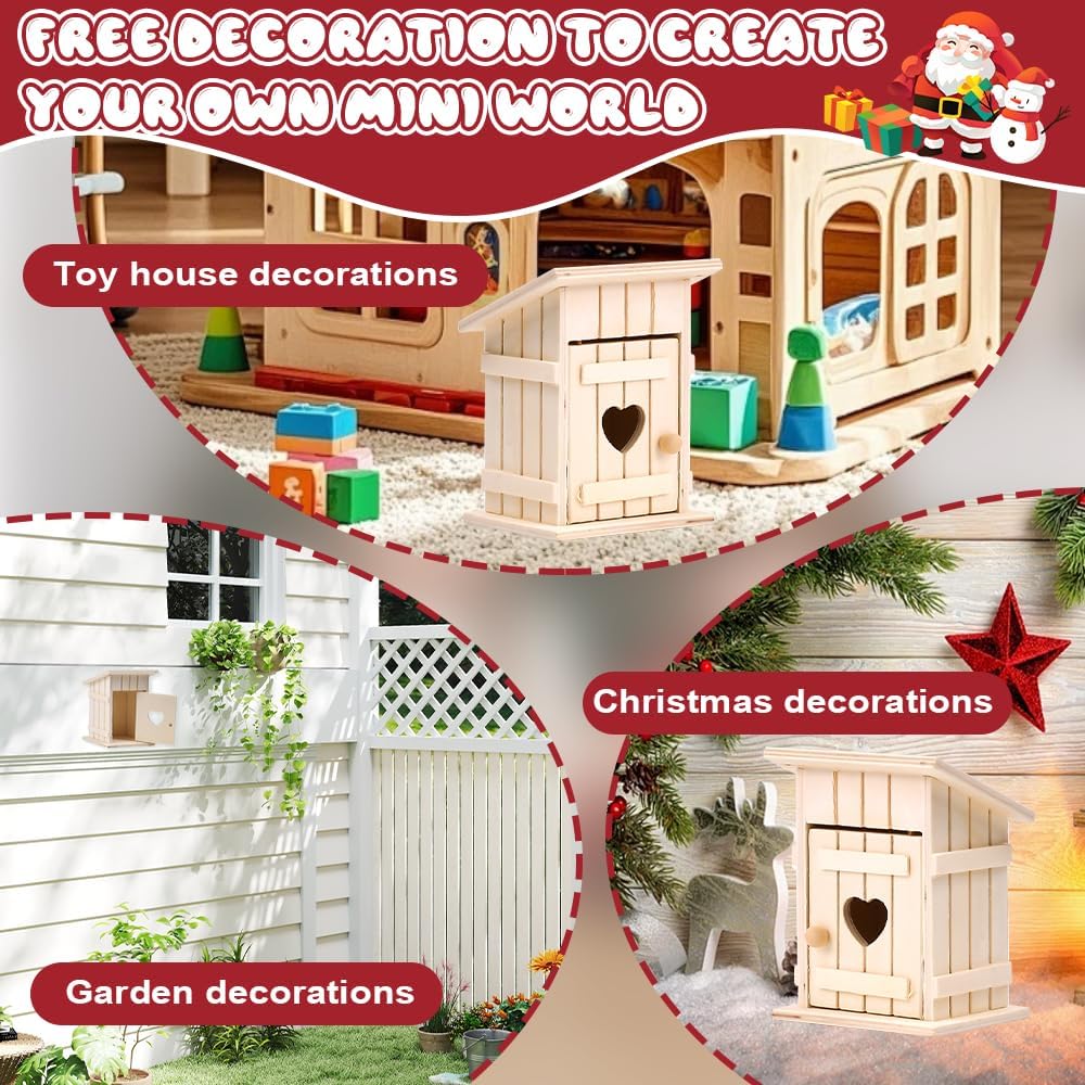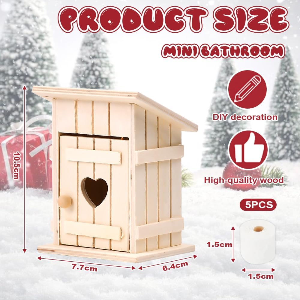 【Casetta in Legno|Dettagli che Scaldano il Cuore】La mini toilette per casa delle bambole in legno naturale è levigata e piacevole al tatto. Misure compatte 10×8×6 cm per inserirsi in ambientazioni fiabesche o presepi. Nella scenografia natalizia domestica, crea uno spazio intimo per gli gnomi, rendendo il mondo immaginario dei bambini più vivido e realistico 【5 Rotoli di Carta|Piccoli Dettagli Divertenti】Include 5 rotolini di carta igienica bianca da 1,5 cm, miniaturizzati ma ricchi di dettaglio. I bambini possono posizionarli nella casetta per gnomi simulando scene di vita quotidiana. Questa attenzione al particolare stimola il gioco di ruolo, trasformando la casa delle bambole in uno spazio narrativo 【Superficie Personalizzabile|Stimola la Creatività】La superficie lignea si presta a essere decorata con colori atossici. I bambini possono disegnare motivi natalizi o scritte dedicate agli gnomi natalizi. La porticina apribile aumenta l'interattività. Non solo decorazione, ma anche materiale creativo per momenti familiari congiunti 【Composizione Libera|Per un Mondo in Miniatura】La struttura semplice non richiede montaggio complesso. Si integra subito in case delle bambole o scenari natalizi esistenti. Accostabile a muschio e sassolini per creare angoli giardino o forestali. Perfetta per decorare presepi, villaggi natalizi o quadri scenografici 【Regalo con Incanto|Per Piccoli Sognatori】Che sia per arricchire l'atmosfera natalizia o da regalare a bambini appassionati di miniaturismo, questo set è un pensiero originale e affettuoso. Occupa poco spazio ma illumina di fantasia il gioco, aggiungendo umorismo e tenerezza all'allestimento festivo domestico
