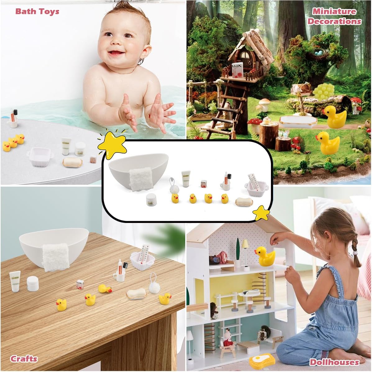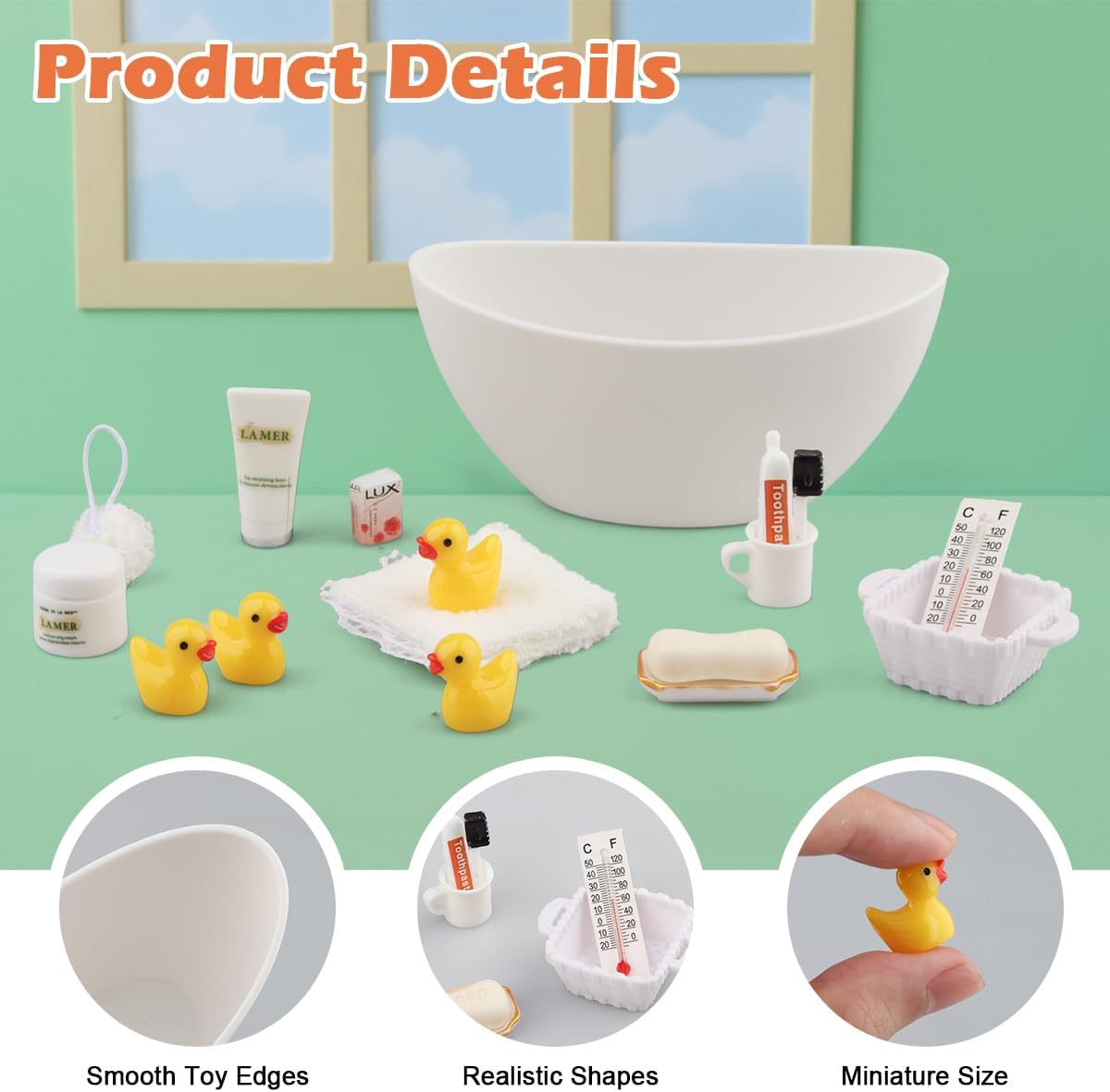 🛁 【16 Pezzi Miniatura Bagno Folletto 1:12】 Come un set completo da bagno come accessorio perfetto per il gnomo, include Sapone profumato, mini spazzolino da denti, bicchiere per spazzolino, dentifricio, detergente viso, vasca da bagno, asciugamano, pallina da bagno, 4 mini paperelle e altri accessori. 🌿【Design Raffinato】Questo set da bagno non è solo un giocattolo, ma anche un artefatto che stimola la creatività dei bambini. Progetta e decora il tuo bagno dei nani insieme ai tuoi bambini. Che non solo riproducono delicatamente i dettagli della vita quotidiana del nano, aiuta i bambini a sviluppare buone abitudini di igiene personale e aggiunge realismo e divertimento ad ogni avventura nel bagno dei nani. 🎁【Regalo Magico di Natale】Miniature Accessori per Gnomi Sono Realizzati in Plastica. Design Realistico, non Facilmente Deformabile, Leggero e Resistente. Set perfetto per scene folletto di Natale o decorazioni. Idea regalo creativa per compleanni, Natale e amanti del fai-da-te. Appositamente progettato per le case delle bambole, il design vivace e l'aspetto carino renderanno la tua casa delle bambole più bella. 🏡 【Decorazione Polifunzionale】Animano case delle bambole, camerette o giardini fatati. Compatibili con accessori miniatura 1:12, cucina e porte dei folletti. Adatto per Soggiorno, Cucina, Tavolo da Pranzo, Giardino e Altre scene di Case Giocattolo. In questo modo ogni momento di gioco diventa un'avventura unica e si stimolano la manualità e l'immaginazione spaziale dei vostri bambini. 🎄 【Magia Natalizia Porta a Porta】 Tutti devono fare il bagno, anche il gnomo. l'arrivo dei gnomi è un evento magico per ogni bambino. Create il bagno dei gnomi secondo i vostri desideri e sorprendete i vostri bambini ogni giorno con nuove avventure.