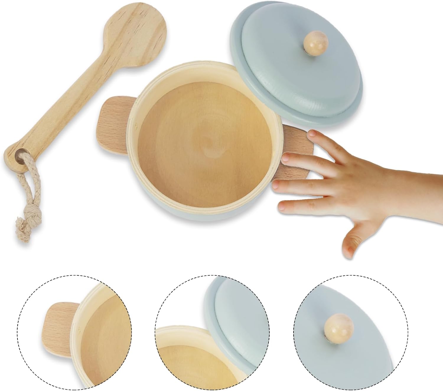 Design in legno premium: regalate ai vostri aspiranti cuochi il nostro set di pentole e padelle in legno, sapientemente realizzato con materiali di legno di alta qualità e sostenibili. Questo incantevole set di pentole è l'aggiunta perfetta a qualsiasi cucina giocattolo e ispira i tuoi piccoli a infinite avventure culinarie. ISPIRA IL GIOCO IMMAGINATIVO: Guarda la creatività del tuo bambino mentre cucini una festa con questo set di pentole splendidamente progettato. Con dettagli realistici e una varietà di pentole, questo set da gioco stimola ore di gioco con uscita aperta e promuove le capacità di narrazione e l'immaginazione dei bambini. PROMUOVE LO SVILUPPO COGNITIVO: le nostre pentole e padelle giocattolo in legno non solo promuove la creatività, ma aiuta anche i bambini a sviluppare importanti capacità cognitive e motorie. Si esercitano nella coordinazione occhio-mano, nella risoluzione dei problemi e nella comunicazione, creando una solida base per l'apprendimento successivo. SICUREZZA E DURATA GARANTITA: la sicurezza del tuo bambino è per noi al primo posto. Queste pentole sono realizzate con colori atossici e hanno bordi lisci e arrotondati, quindi è assolutamente sicuro per le mani piccole. Inoltre, la struttura robusta garantisce una lunga durata per anni di gioco fantasioso. Il regalo perfetto per i giovani cuochi: siete alla ricerca del regalo ideale per il vostro aspirante piccolo cuoco? Le nostre pentole e padelle giocattolo in legno sono una scelta fantastica per compleanni, vacanze o qualsiasi occasione speciale. Delizia il tuo bambino con questo accattivante set da gioco e guarda la sua passione per la cucina e la sua creatività sbocciare.