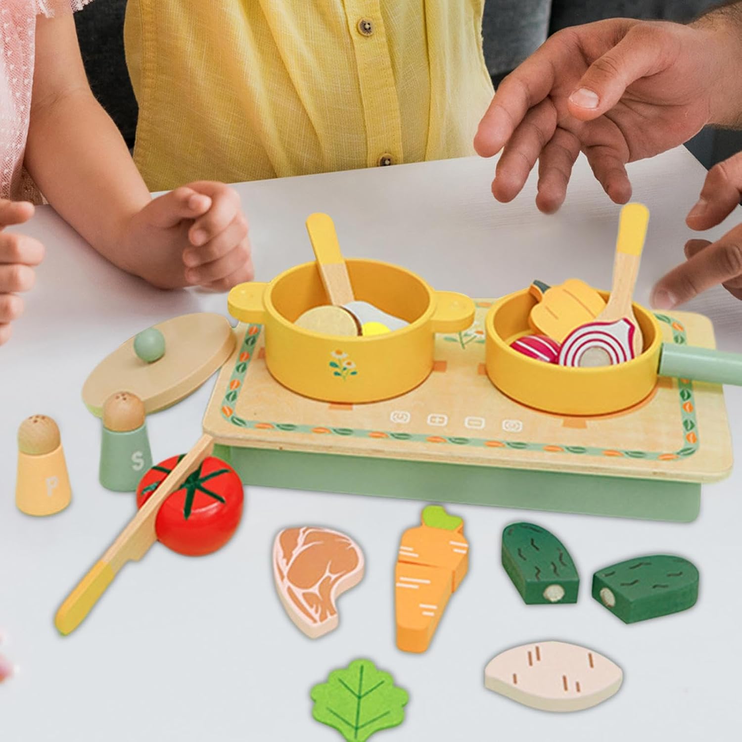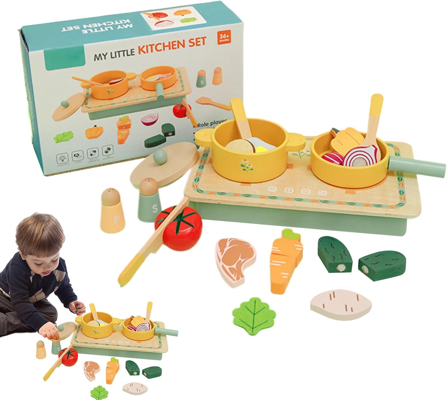 Struttura robusta: realizzata in materiale di legno sicuro e innocuo di alta qualità che garantisce la durata. Ideale per più divertimento e creatività, offrendo un tempo di gioco sicuro per i bambini Design creativo: versione impressionante con eccellente artigianato, garantendo durata e fascino estetico per ore di gioco fantasioso, questo set da cucina offre un'esperienza visivamente impressionante Ispira la cucina fantasiosa: fornisce una vasta gamma di ingredienti simulati e utensili da cucina, consentendo ai bambini di essere coinvolti in scenari culinari fantasiosi con un gran numero di accessori Presente favorevole: Spark Play Creative per feste di compleanno e riunioni di vacanza con questi set da cucina simulata, ideale per Natale, Ringraziamento e occasioni speciali Comodo stoccaggio: facilmente trasportabile e luce piuma, questo set da cucina per bambini è pronto per divertirsi all'aria aperta con le sue eleganti scatole di imballaggio, il che rende la pulizia molto facile