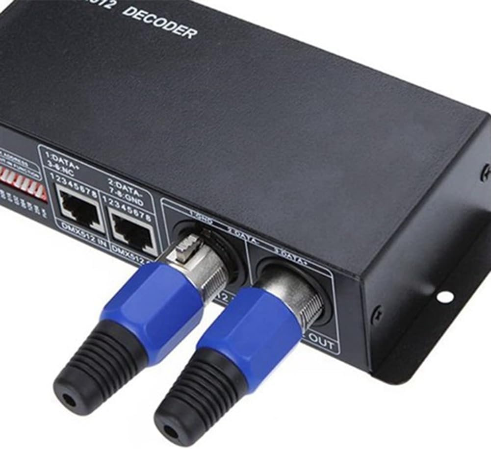 È possibile connettersi a una console digitale per ottenere funzioni di attenuazione RGB. -L'indirizzo può essere impostato tramite DIP switch. Interfacce di segnale: XLR-3 e RJ45. Riceve un segnale di controllo digitale standard -512 e lo converte in un segnale PWM per regolare il LED. Fino a 15 e 31 livelli di velocità per le tue opzioni.