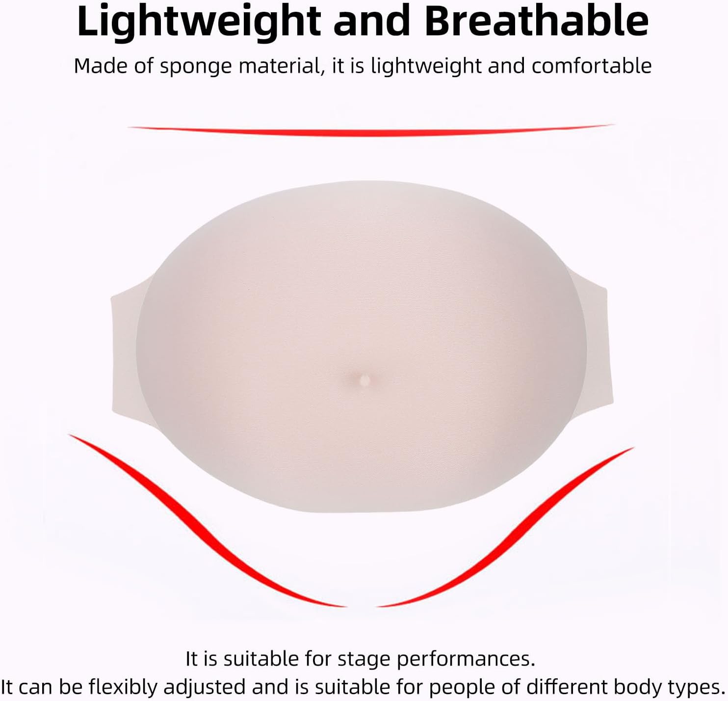Design leggero e traspirante: resta fresco e comodo tutto il giorno con il nostro design leggero e traspirante.Il cuscinetto per pancia artificiale è progettato per facilitare i movimenti, assicurandoti di goderti il tuo cosplay, le riprese o la festa senza problemi. Di supporto e regolabile: dì addio al disagio.I puntelli in pellicola di spugna sulla pancia assicurano una perfetta aderenza, rendendolo adatto a vari di corporatura e attività.Ideale per lunghe ore di utilizzo in produzioni cinematografiche, eventi cosplay o feste di grande pancia. Facile da indossare: materiale in spugna sicuro, che ti fa sentire parte del tuo corpo e comodo da indossare.Senza oneri aggiuntivi, il nostro pancione artificiale consente agli artisti di interpretare i propri ruoli con facilità e autenticità. Comodo e portatile: con un design staccabile, questo finto cuscinetto per la pancia è facile da trasportare e riporre. Non comprime l'addome, garantendo una vestibilità comoda agli attori nelle varie performance. Ampie applicazioni: ampiamente utilizzato in spettacoli teatrali e cinematografici, pubblicità e vendita al dettaglio, in molti casi.Una volta indossato, ti trasformerai immediatamente e sembrerai assolutamente reale.